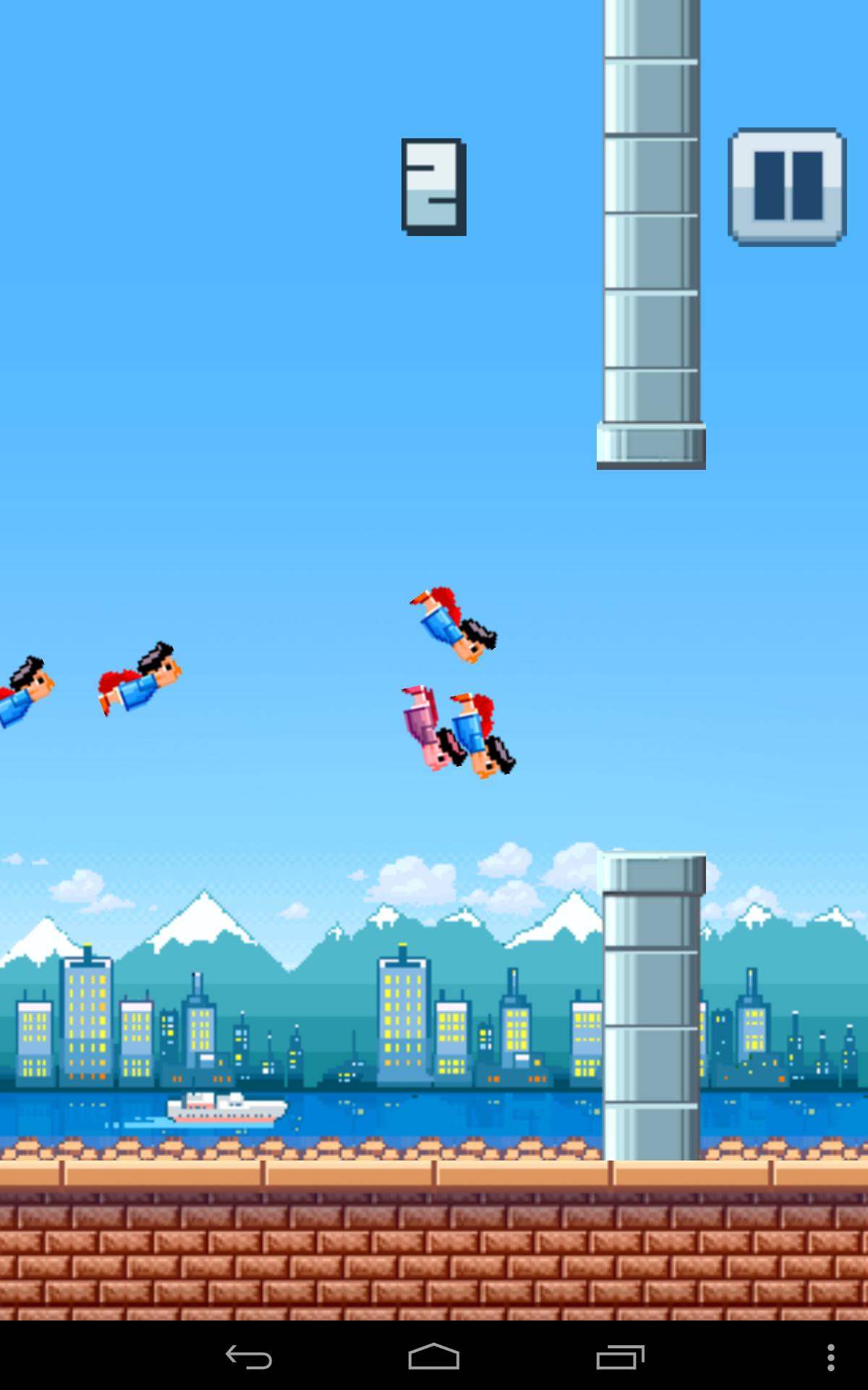 Toque y aplasta a los torpes chicos voladores en este juego divertido y adictivo. Evite su escape salpicado y aplasta a tantos tipos con pantalón como sea posible con las bandejas de tubería de hierro. Este juego es un juego muy simple como Flappy Bird. Toque a Jack y aplastar para ver si puede obtener el puntaje de pantalones más alto. ¿Vas a anotar el récord? ¡Toque lo mejor que pueda para averiguarlo ahora!