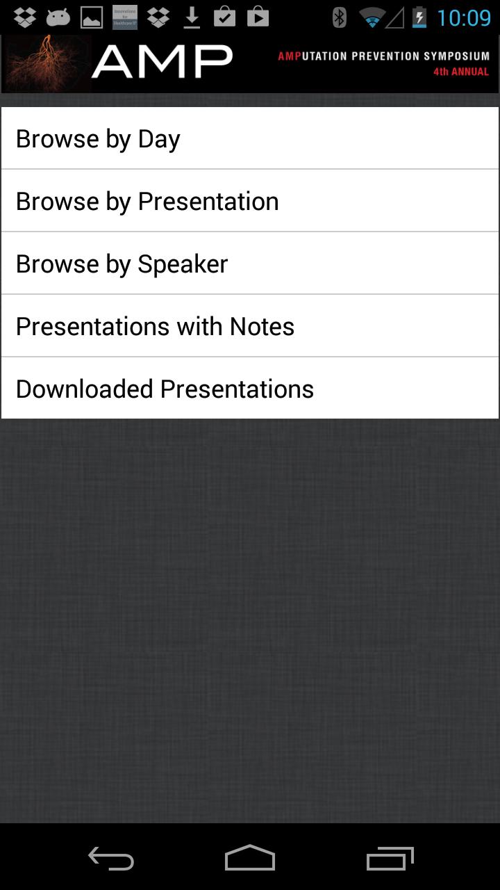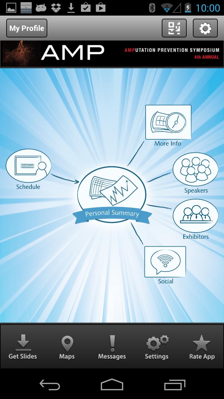 L'application mobile AMP 2014 vous permet de voir des résumés, des présentations, des conférenciers et des exposants du symposium. Les utilisateurs peuvent prendre des notes adjacentes de diapositives de présentation disponibles et dessiner directement sur les diapositives à l'intérieur de l'application. La prise de notes est également disponible dans le module d'exposant.