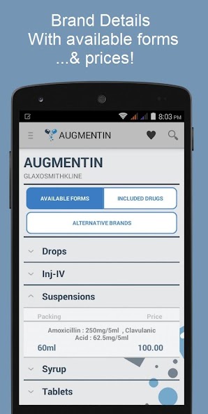 Pharmapedia Pakistan vous donne un accès gratuit et hors ligne à des informations sur les médicaments génériques (dosages, indications, plus), les marques de médecine au Pakistan avec des prix et des formulaires disponibles, des marques alternatives et bien plus encore. Tout cela sans nécessiter de publicité clé ou ennuyeuse - il suffit d'installer et de plonger dans la mer des connaissances médicales, pas d'Internet requis!
