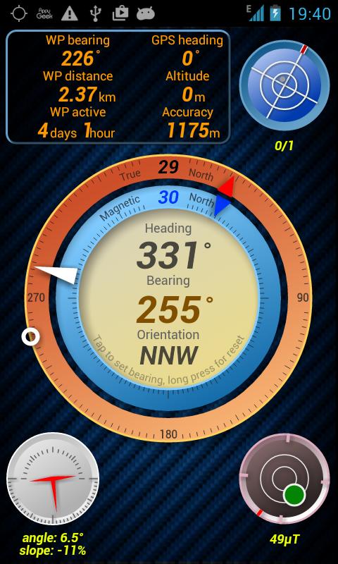 - Clinomètre;