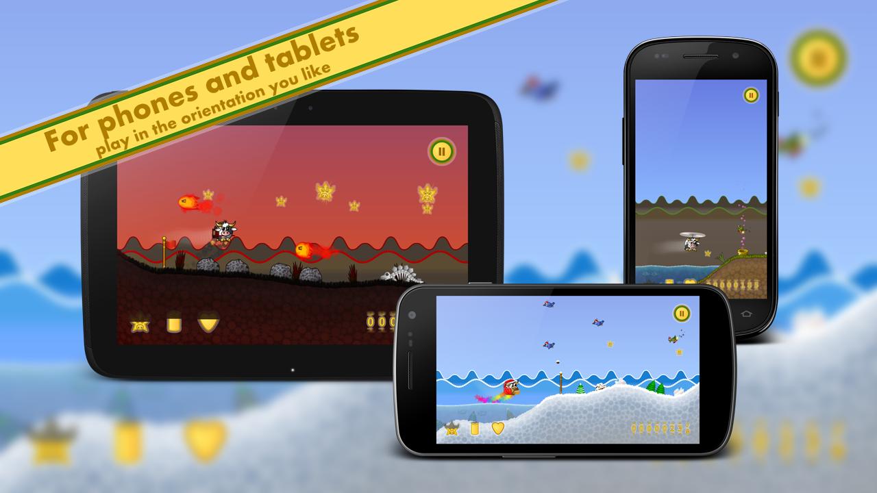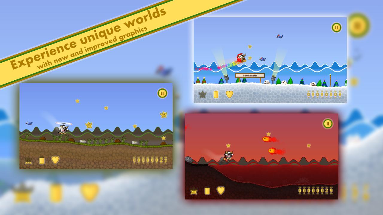 Un nouveau jeu d'arcade à défilement latéral passionnant avec une petite vache avec de nombreux talents.
