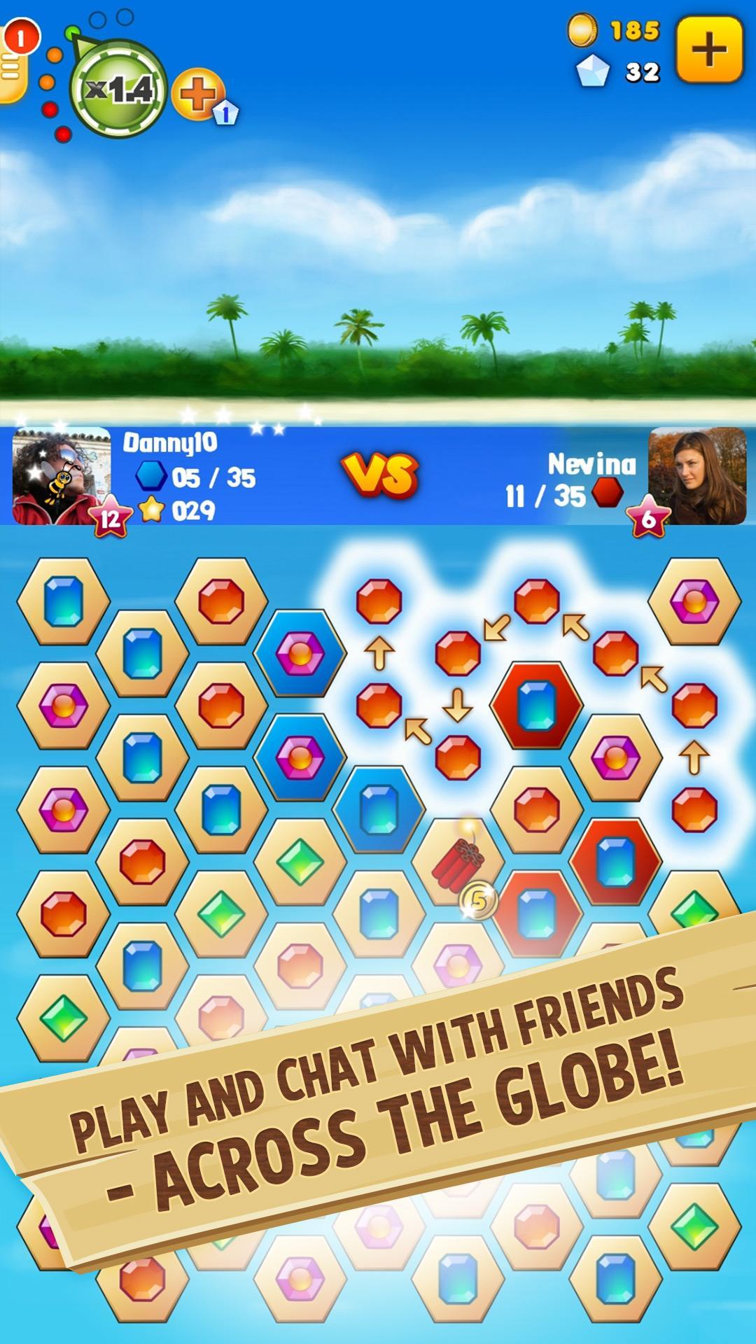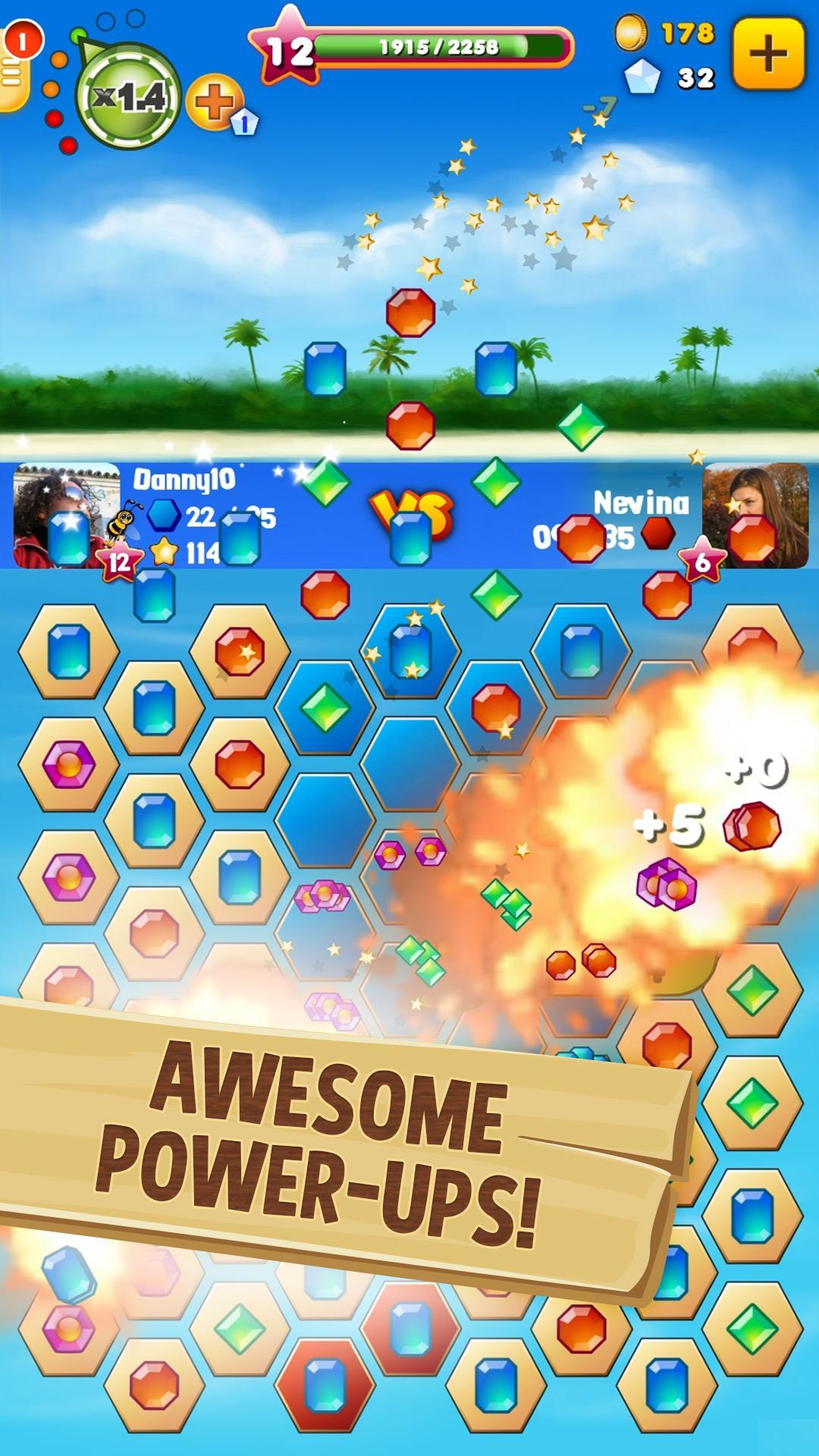 Dans Diamonds Paradise SE votre objectif est de battre votre adversaire en prenant le contrôle de la zone de jeu en chaînant des diamants. Le jeu est joué à tour de rôle contre les adversaires en direct! Utilisez des bombes et d'autres éléments spéciaux pour aider votre quête. Ouvrez les boîtes mystères pour révéler des prix secrètes. Gagnez des diamants en nettoyant les réalisations et rejoignez des tournois pour gagner de grands prix!