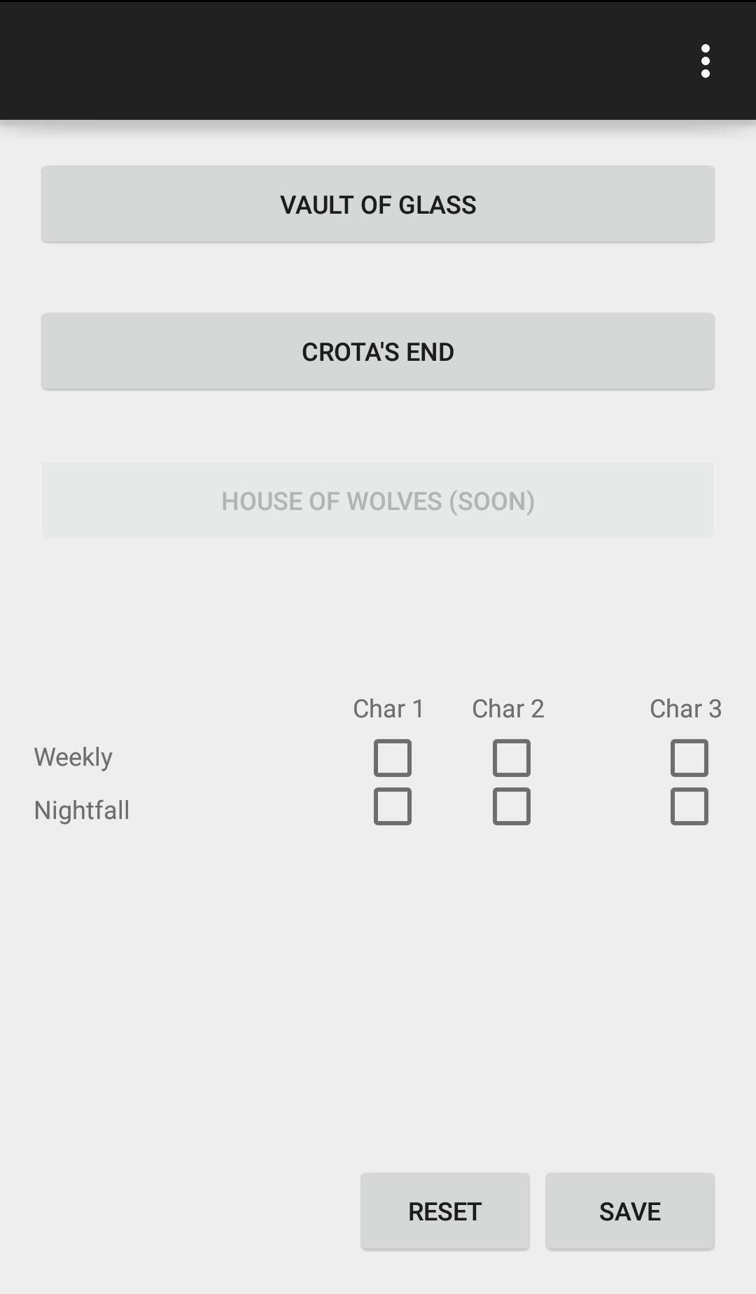 Vous pouvez maintenant contrôler vos progrès et vous rappeler si vous terminez déjà un raid, une frappe hebdomadaire et une tombée de nuit.