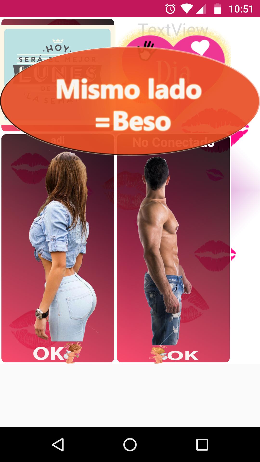Obtenez des bisous d'une manière très facile et amusez-vous à distribuer des cachets avec les jours de semaine, nous commençons par le premier jour lundi si les deux sélectionnent l'adresse avec l'avatar, l'homme embrassera la fille et si c'était dans la direction opposée, la femme donnera une gifle sur l'homme et ainsi de suite jusqu'au dimanche.