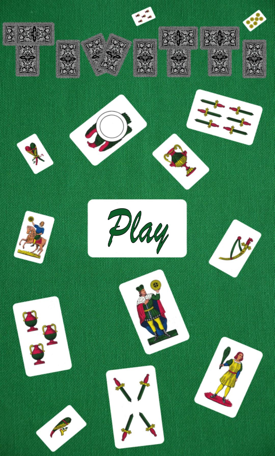 Tivitti est un jeu de cartes répandu en Sicile et en Calabre à travers un jeu de 40 uniformes en 4 graines (tasses, argent, bâtons, épées) de 10 cartes chacune et jouées par 2 personnes ou plus.