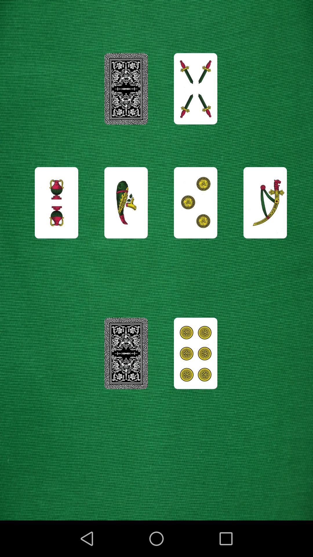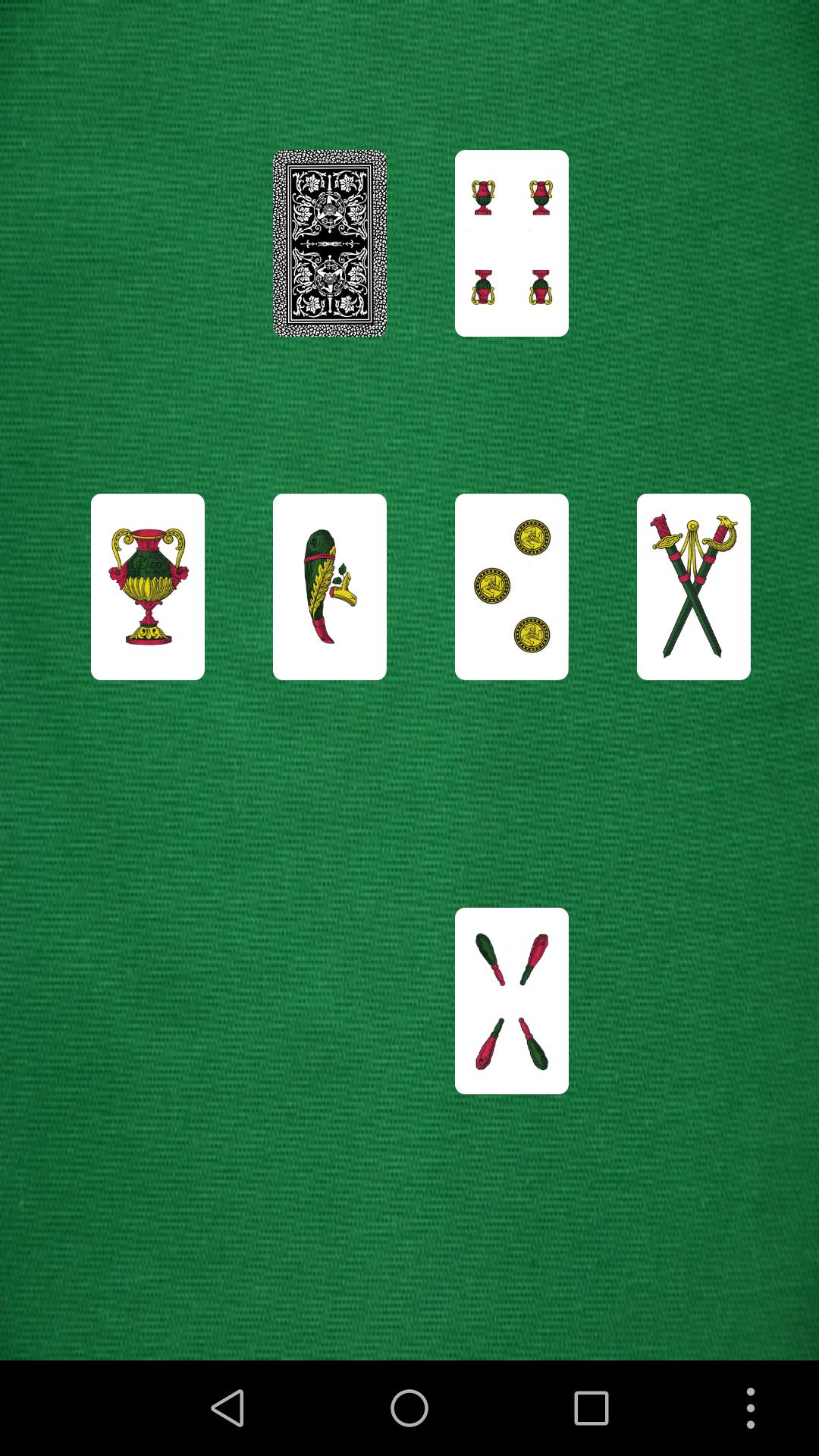 Chaque joueur du virage respectif peut tourner une carte à la fois: s'il s'agit d'un 1, vous l'avez au centre de la table qui commence une "pile" (vous arrivez au roi, ou 10) de chaque graine et vous pouvez tourner une autre carte; Si cette carte ne peut pas être positionnée sur la "pile" mais qu'elle est toujours supérieure ou inférieure à une unité sur le papier adversaire de la table, elle peut être placée sur cette carte, comme augmenter par une unité le nombre de papiers de l'adversaire formant une "pile" également sur le deck de l'adversaire et continuez à tourner les cartes; Si, d'un autre côté, notre carte n'est pas positionnable ni sur la "pile" des graines ni sur celle du pont adverse, vous le mettez pour être découvert sur notre pont et que la main passe à l'adversaire.