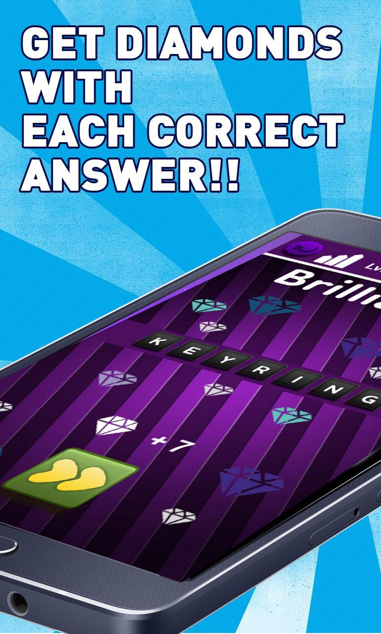 Avec chaque bonne réponse, vous gagnez des diamants; Vous pouvez les dépenser pour obtenir la réponse ou les indices sous la forme d'une lettre contenue dans la réponse.
