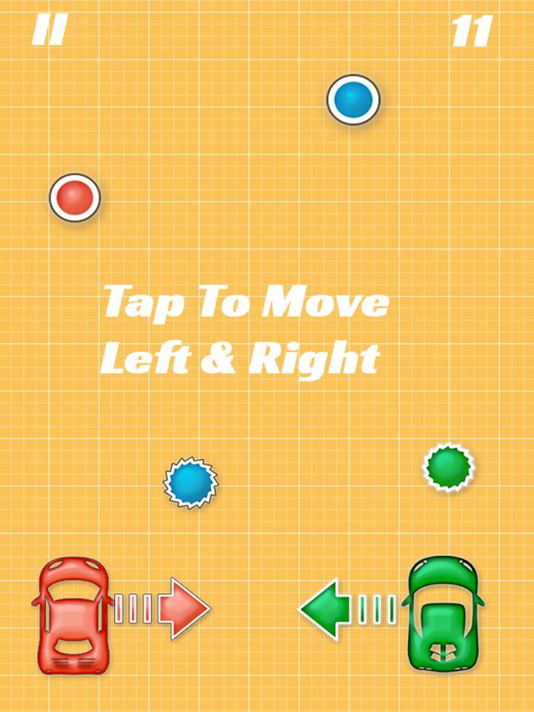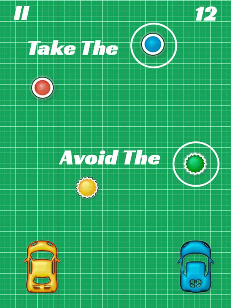 Control your 2 Cars.Avoid the the circle and take the square to make scores.