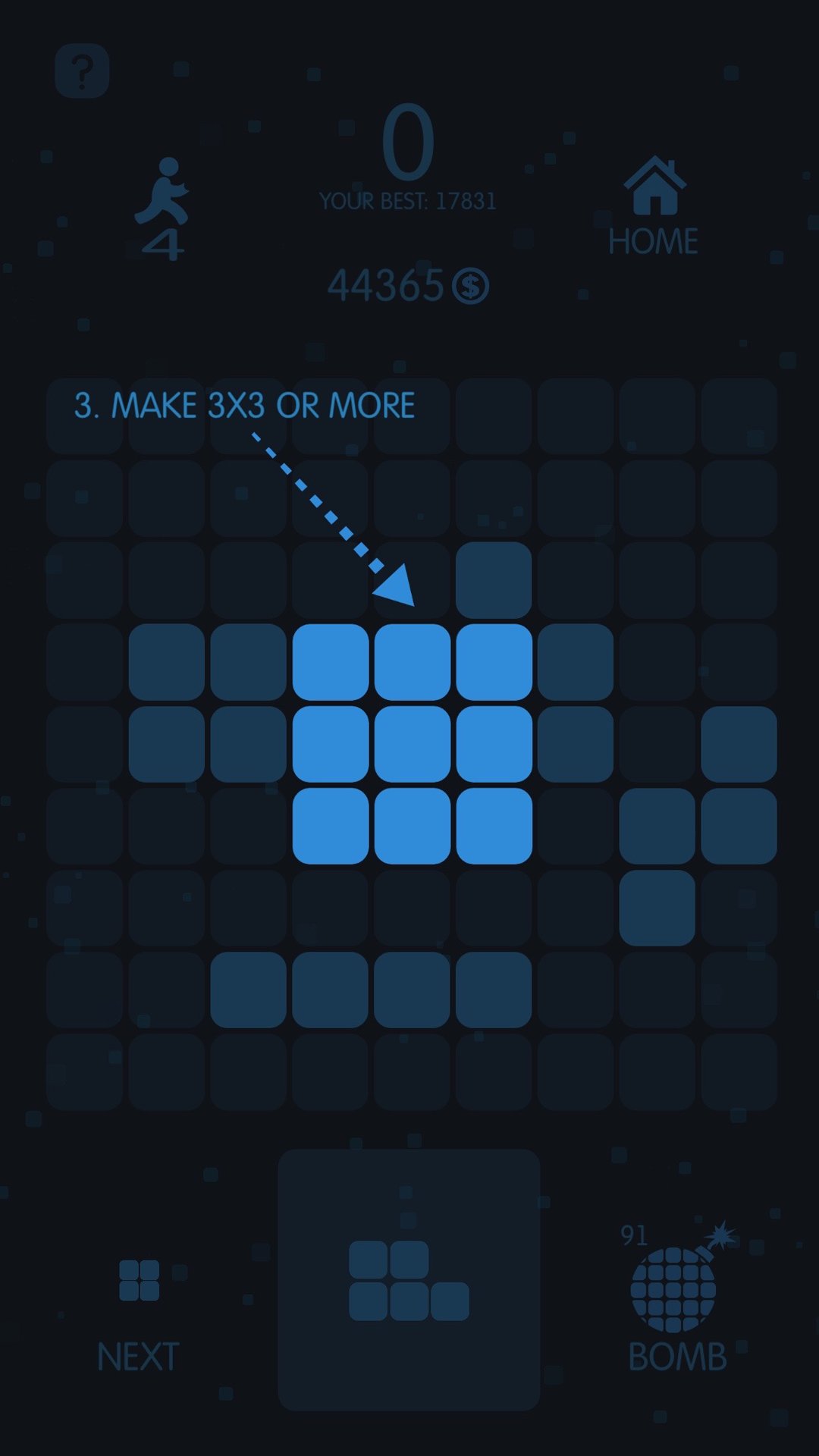 Just turn the figure and place on game field to make 3x3 or bigger blocks.