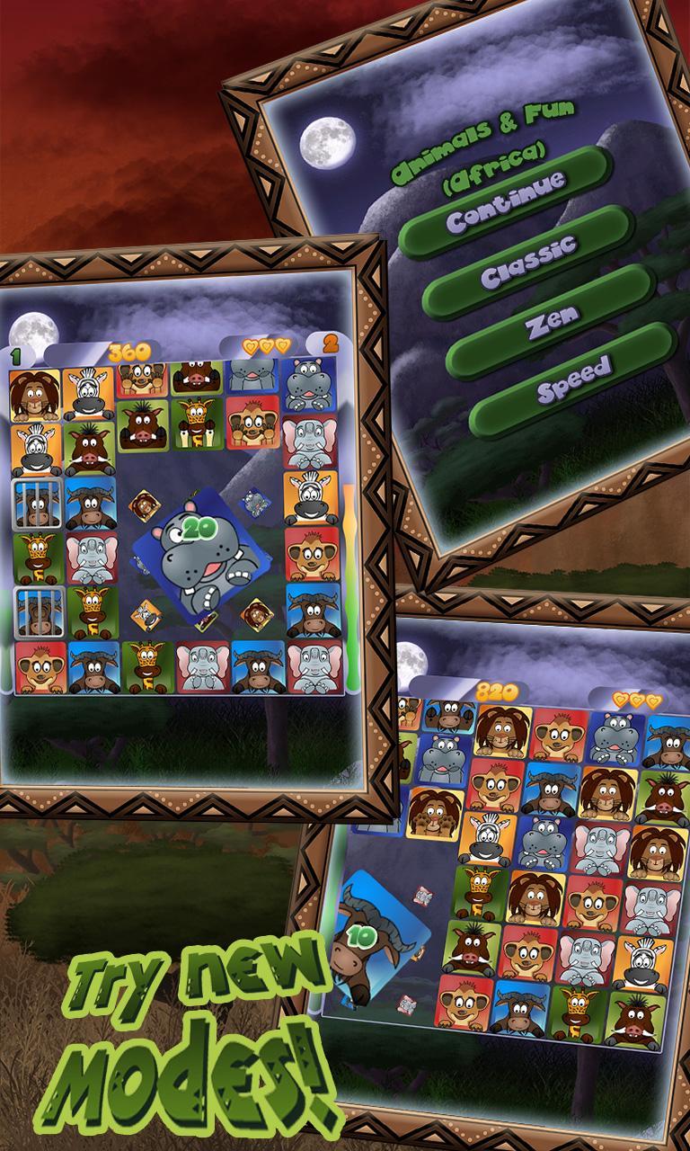 To match three animals, drag one up, down or sideways. If you match five or more animals, you get a flashy animal!