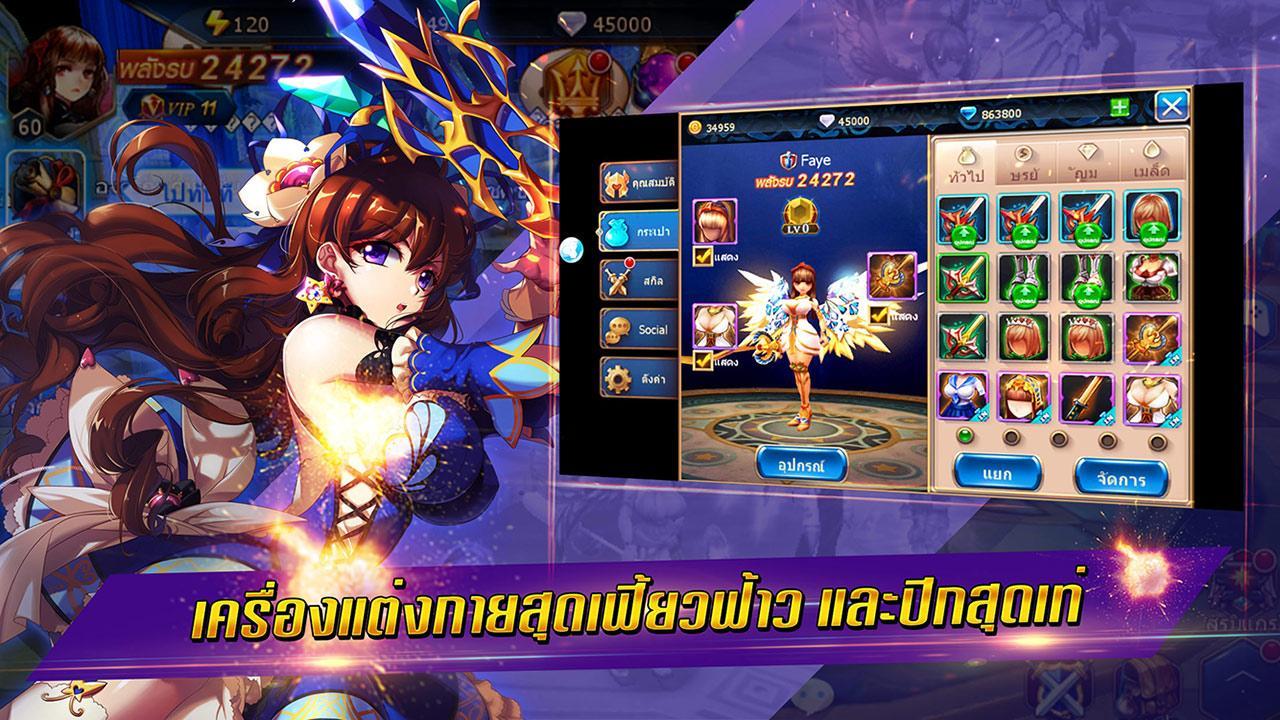 The KM3D engine to create a resolution of 4K Full HD. Dynamic light show. Painting from the Japanese team Very sexy fashion dress For you to see the most beautiful images Arena, the dynasty challenge the god of the Sacred Krabi War. Can train a hero 24 hours a day BOSS's short shortage Beat the enemy must be good. Cooperate to create a deep strategy which Allowing you to enjoy the fight that has never been found anywhere before.