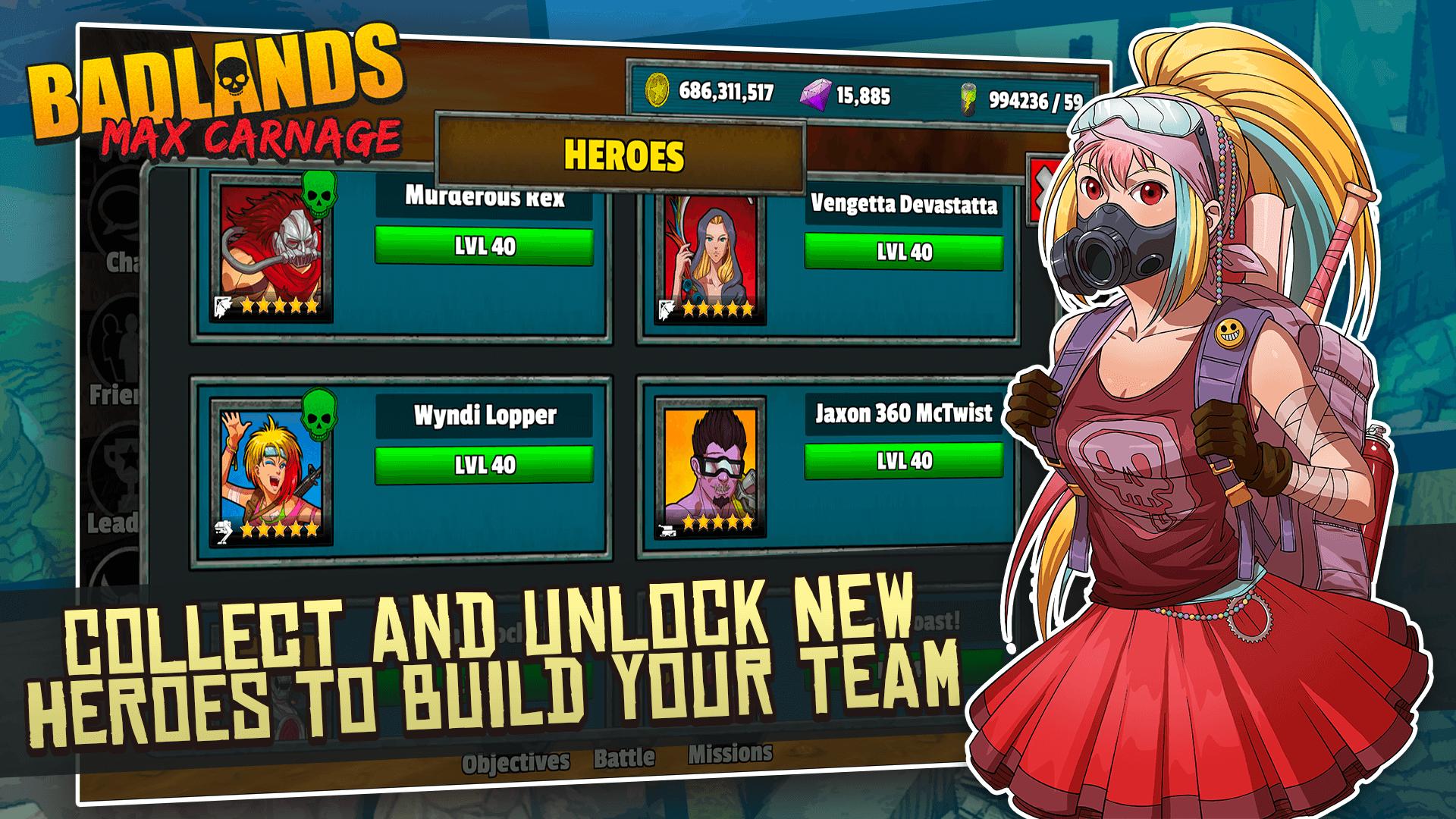 Badlands - Max Carnage is a Social, Turn-Based, Collectable Role-Playing Game with a TEEN rating.