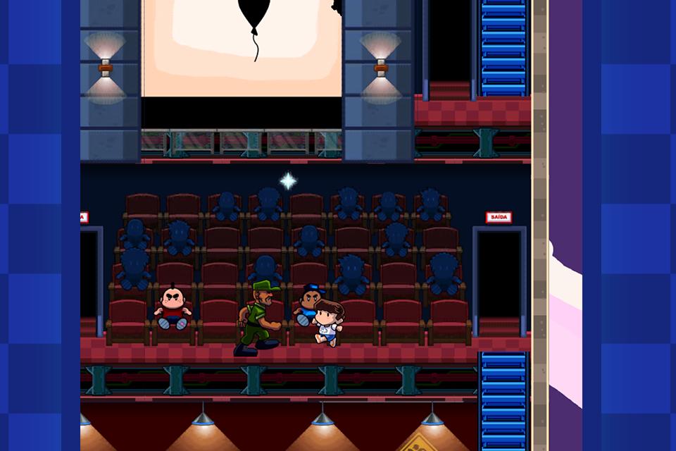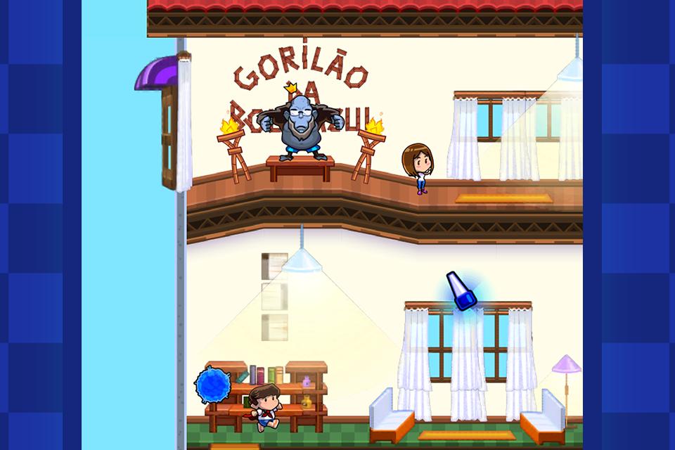 In this game you are the teenager "Marcelo", and your goal is to eat the daughter of Gorilão da Bola Azul . In fact, your real goal is to complete the three phases and bring the girl to the movies, but everyone knows that deep down you just want to get in. In fact, in fact, everything you do in life is intended to eat the daughter of others, so this game is your choice.