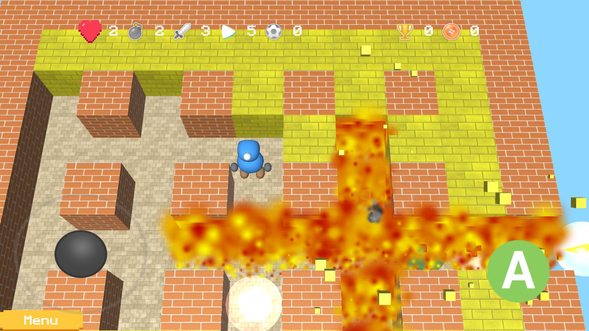 make explosion blast and kill monsters.Find gate for the next level by destructing tiles.