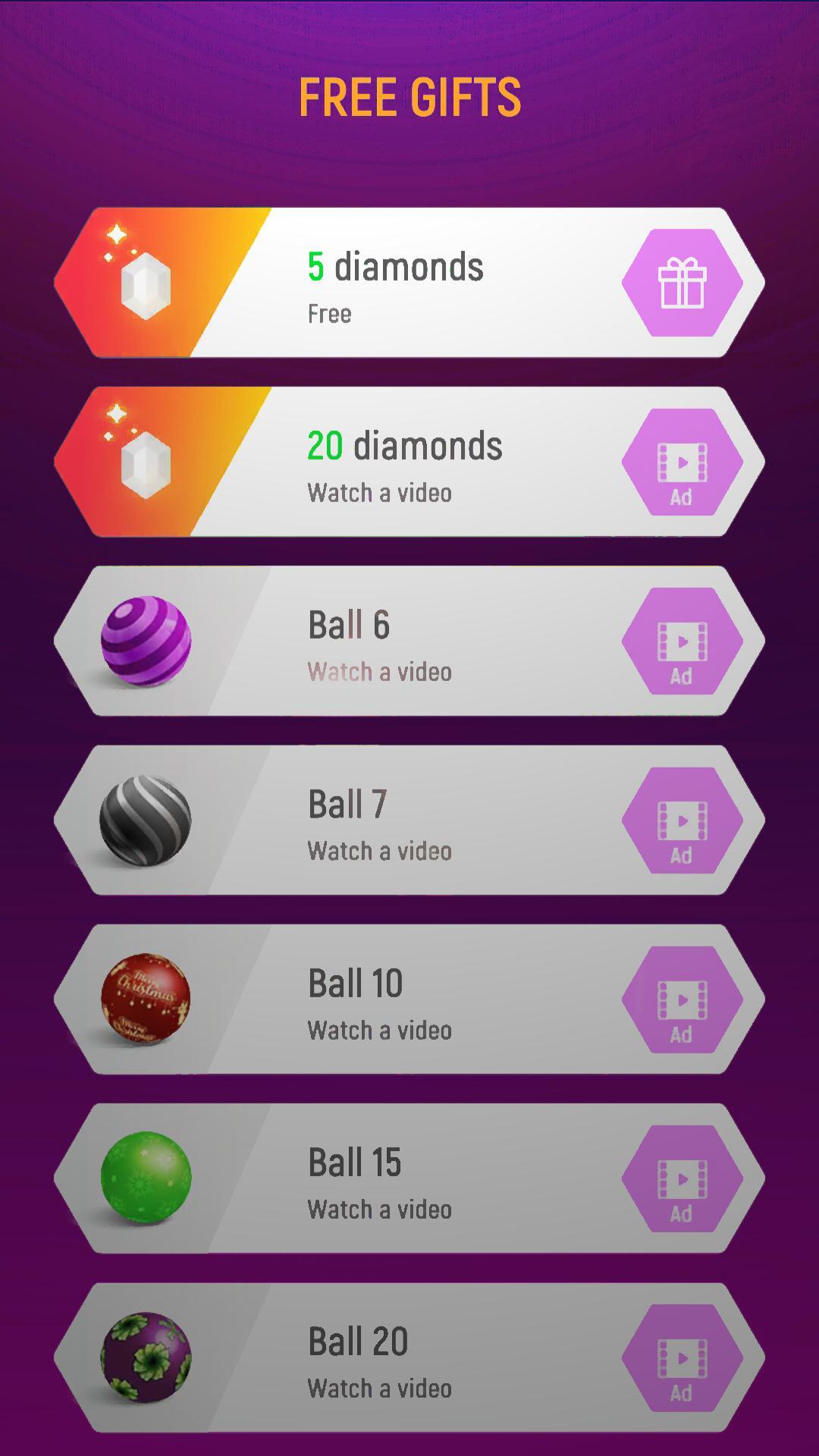 Swipe your fingers to control the bounce ball with the music beat. Just try not to fall off the edge! Finish the song to unlock more attractive EDM and Trap songs.