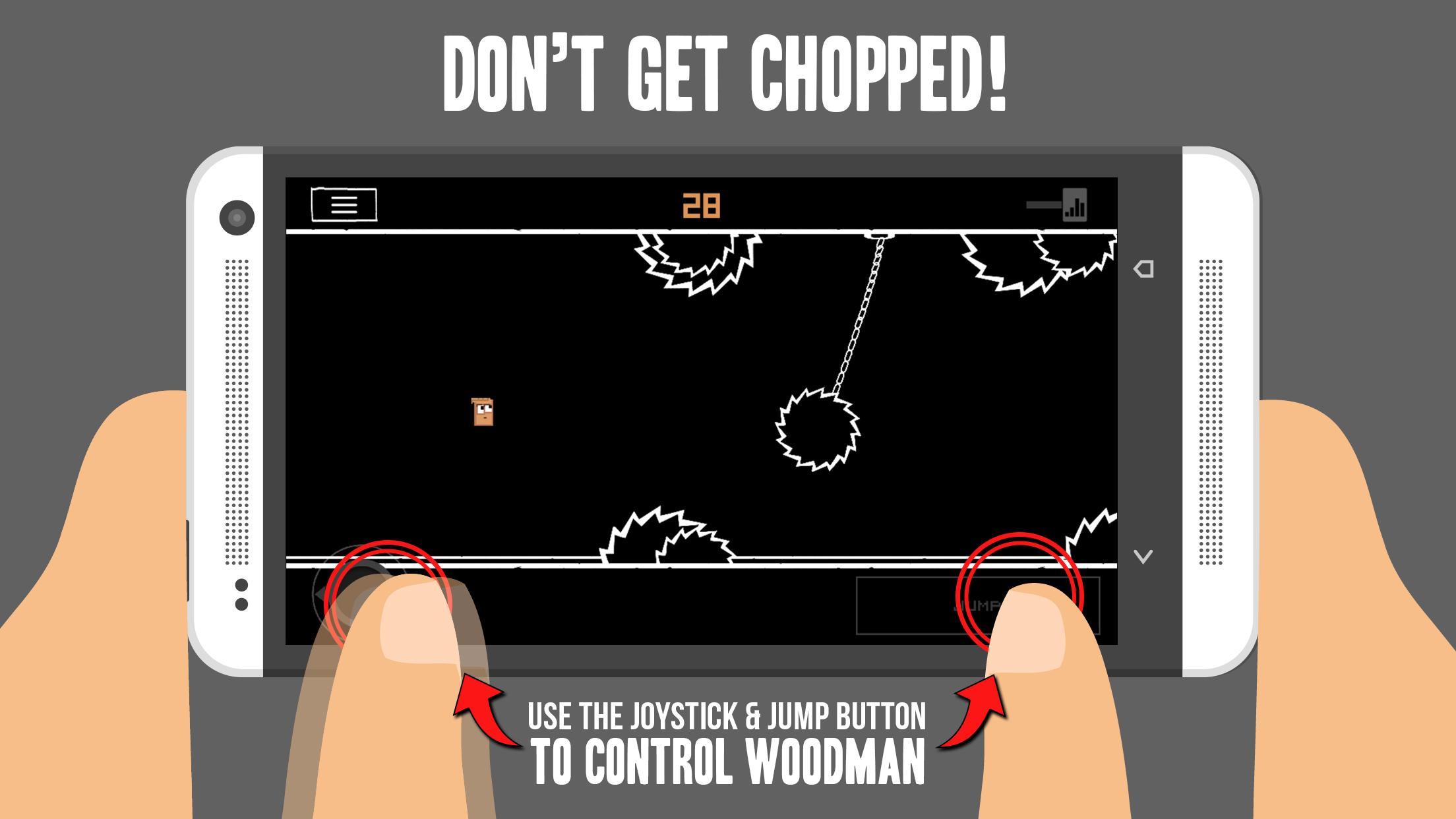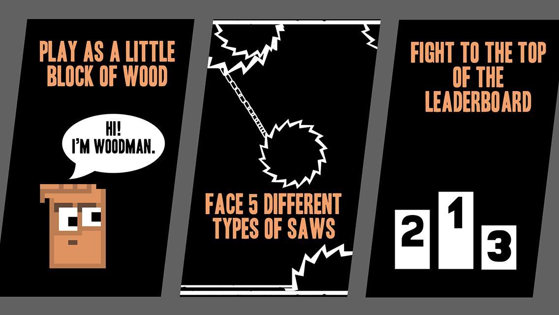 Chop Block is the aggressive platformer where deadly saws chase down Woodman (a little block of lumber). Leap over saws or Woodman will be chopped into debris. Stay alive as long as possible.
