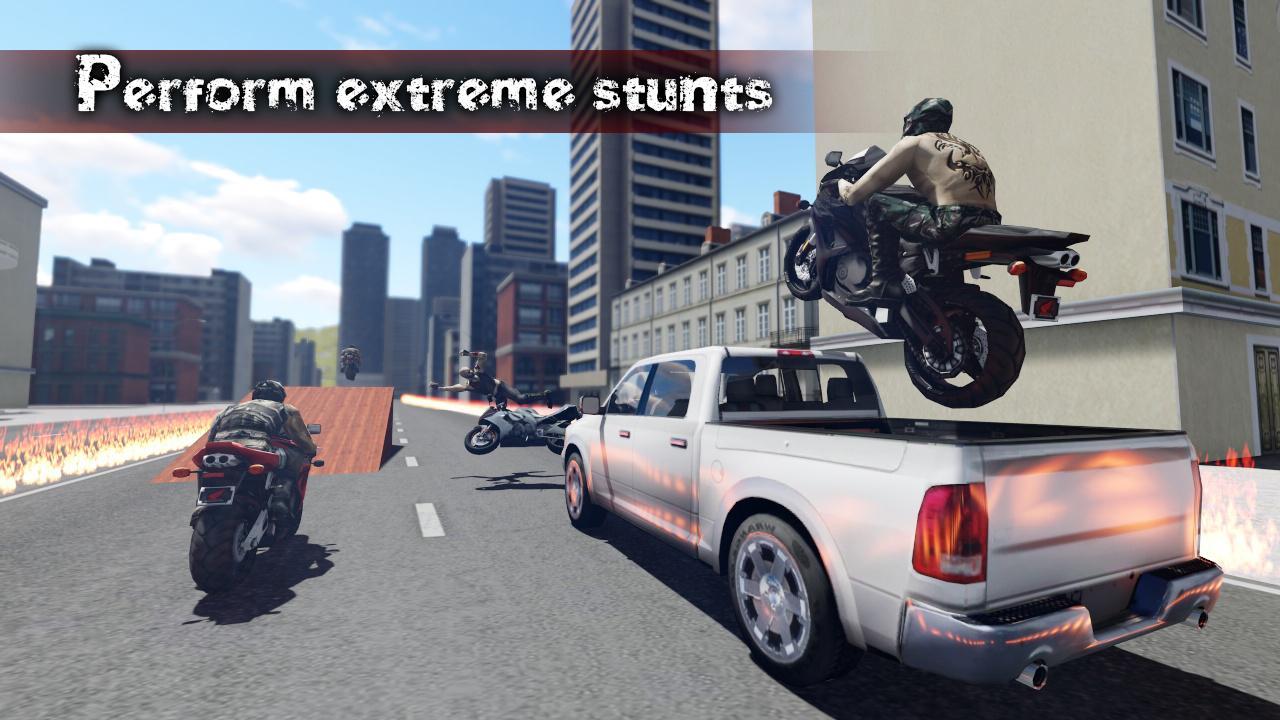 To keep things interesting, Bike Attack Race offers you various options and modes. Attack on opponent bikers using kick, punch, axe, bat or pistol to deviate their attention from race. Perform acrobatic stunts with amazing superbikes in race arena. There will be frustrating obstacles, crazy traffic, firestorm vehicles and gangsters of crime city on your way. Beware of heavy traffic on road junctions as they can smash you pretty bad. Satisfy your passion and fever towards bike racing and stunts challenge. Earn cash by winning the races. This 3D Bike racing game has various features and challenges.