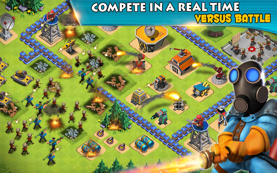 While your base trains troops and harvests resources, it’s time to go out and conquer enemy villages! Play either the single player campaign or attack a rival player’s base in real time combat. You’ll have to destroy their base defenses and their resource buildings to steal their gold and oil!