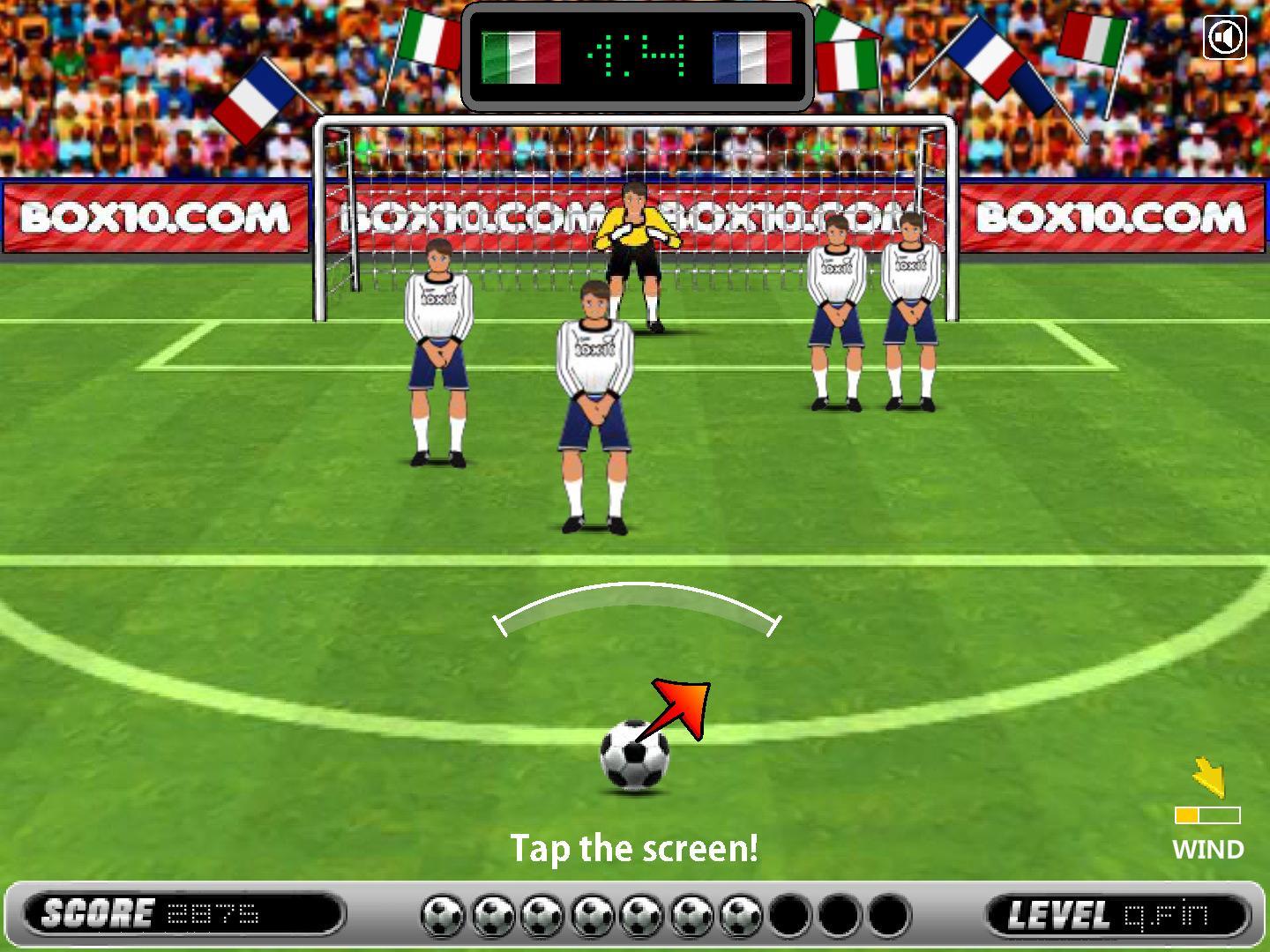 Can you lead your team to glory? Choose your favourite international soccer team, and prepare to play in the 2016 European Football Tournament! Take aim and shoot as you try to score the ultimate free kick! Don't forget to allow for the wind direction and strength as you attempt to curve the ball masterfully around the defence wall. Prove that you are a foot ball hero in the best free HD soccer game! Don't let it go down to a penalty shootout!