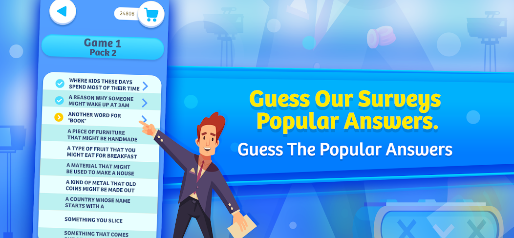 Test your knowledge with Family Quest. Guess the top answers to creative and unique Family Word Game style prompts! This addictive guessing game will keep you thinking and entertained for hours. If you like Family Feud or Family Fortunes, then you’ll love this game! Guess popular answers to challenging, unique, and laugh-out-loud funny surveys. Play with family and friends to reveal answers faster! Can you reveal all of the most popular answers?