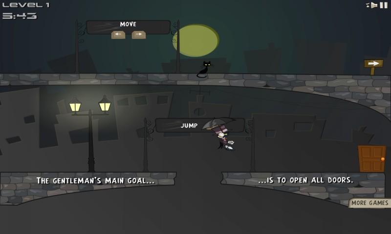 In this game ,the Gentleman will go home during the night,but the way with all sorts of obstacles.