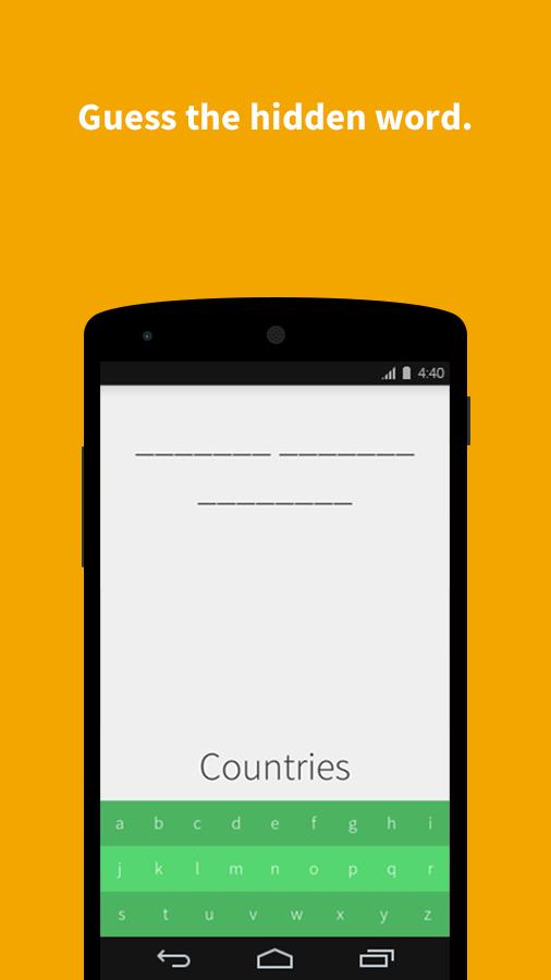 Hundreds of words to guess, In various categories countries, capitals, fruits, cars and much more!