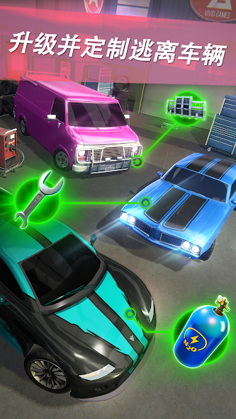 The most wanted deserves the hottest rides. Choose and customize cars from 10 different models, including speedy sports cars and powerful trucks. As you level-up and collect cash, unlock custom looks to customize your car and drive the hottest ride on the road! Use your cash to unlock boosts and power-ups like nitro to escape any police car chase, or wrenches to fix your race car on the go.