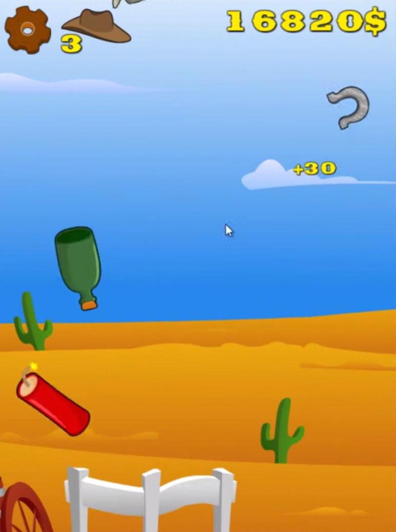 There are special targets like bombs or dynamite that makes you lose life and some like badges or hat makes you gain life. You are in role of a hot lady to play this game!