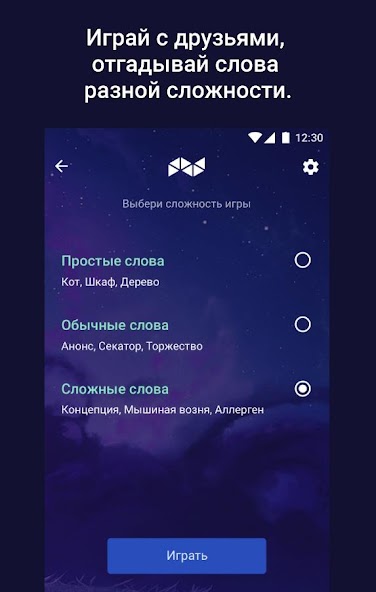 Plays with friends, guess the words of different complexity.