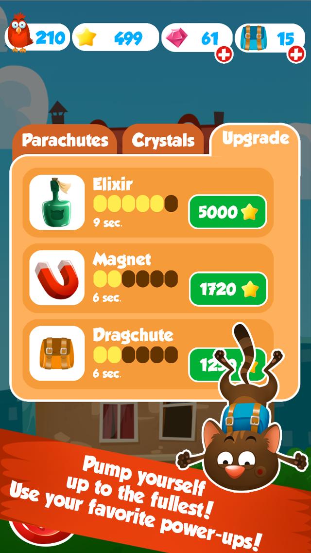 Start a flight with a cat and collect stars, which you can then exchange for superpowers -- they will help you win and move on to the next level.