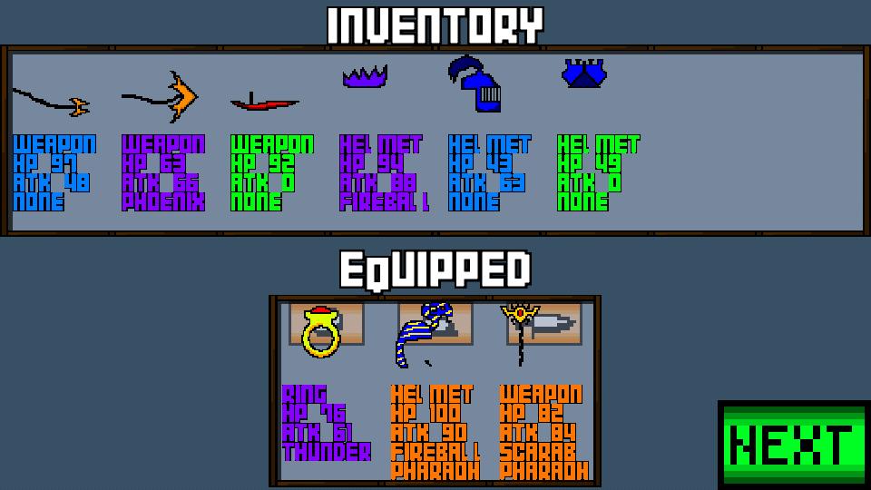 Your bird gets angry if you use the "Dash[->]" ability, which increases its attack. You can unlock further abilities like "Fireball" or "Heal" by equipping epic (purple) and legendary (orange) items!