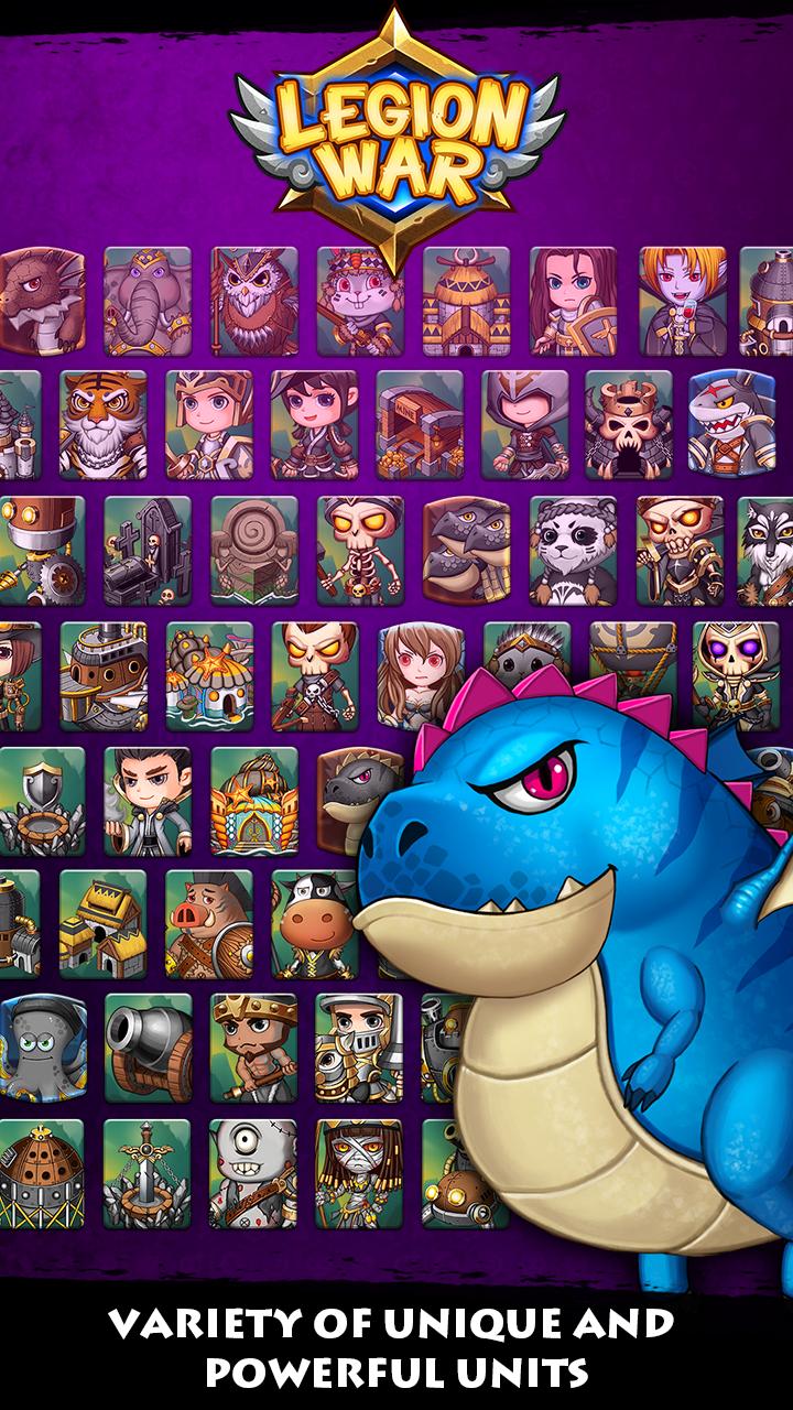 Currently we have 4 major legions human, undead, steam and wild. Each major legion contains 9unique units. And we also have a neutral ocean legion with 4 units. Every unit has different attribute and some of them have its own combat skill or passive skill. There is a unique upgrade route for each unit, upgrading a unit will make it become much more powerful and useful.