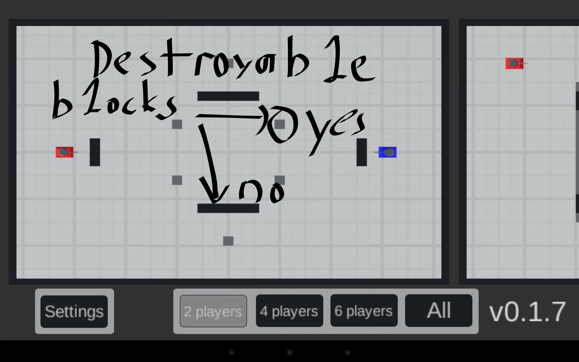 Try out this new game. Make teams or play death match, it's up to you! Currently 2, 4 and even 6 players playing on one device are supported!
