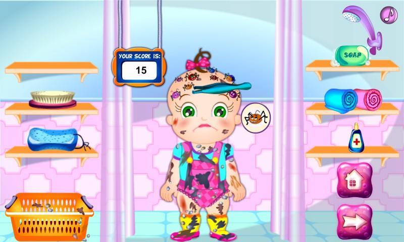 In this game,baby Amaz's clothes are dirty and she has nasty bugs in her hair.now he needs a good bubble bath.Clean up him removing the dirty clothes and the insects on the head.and give a great care and help.New challenge for you.Fun.