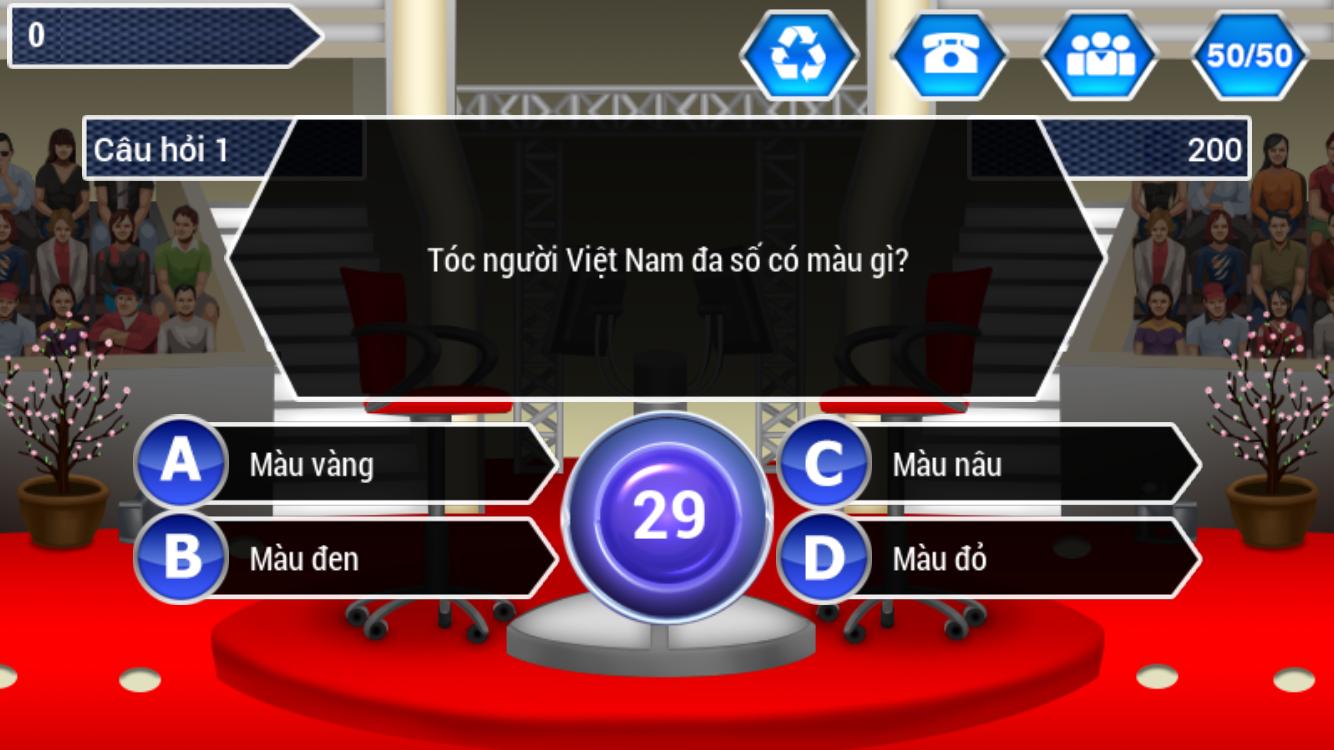 - Consult with the audience in the studio: Each audience in the studio are equipped with computer equipment to give the plan of their choice. When choosing this assistance, the player will receive assistance in the form of results chart the percentage of viewers choosing each option.