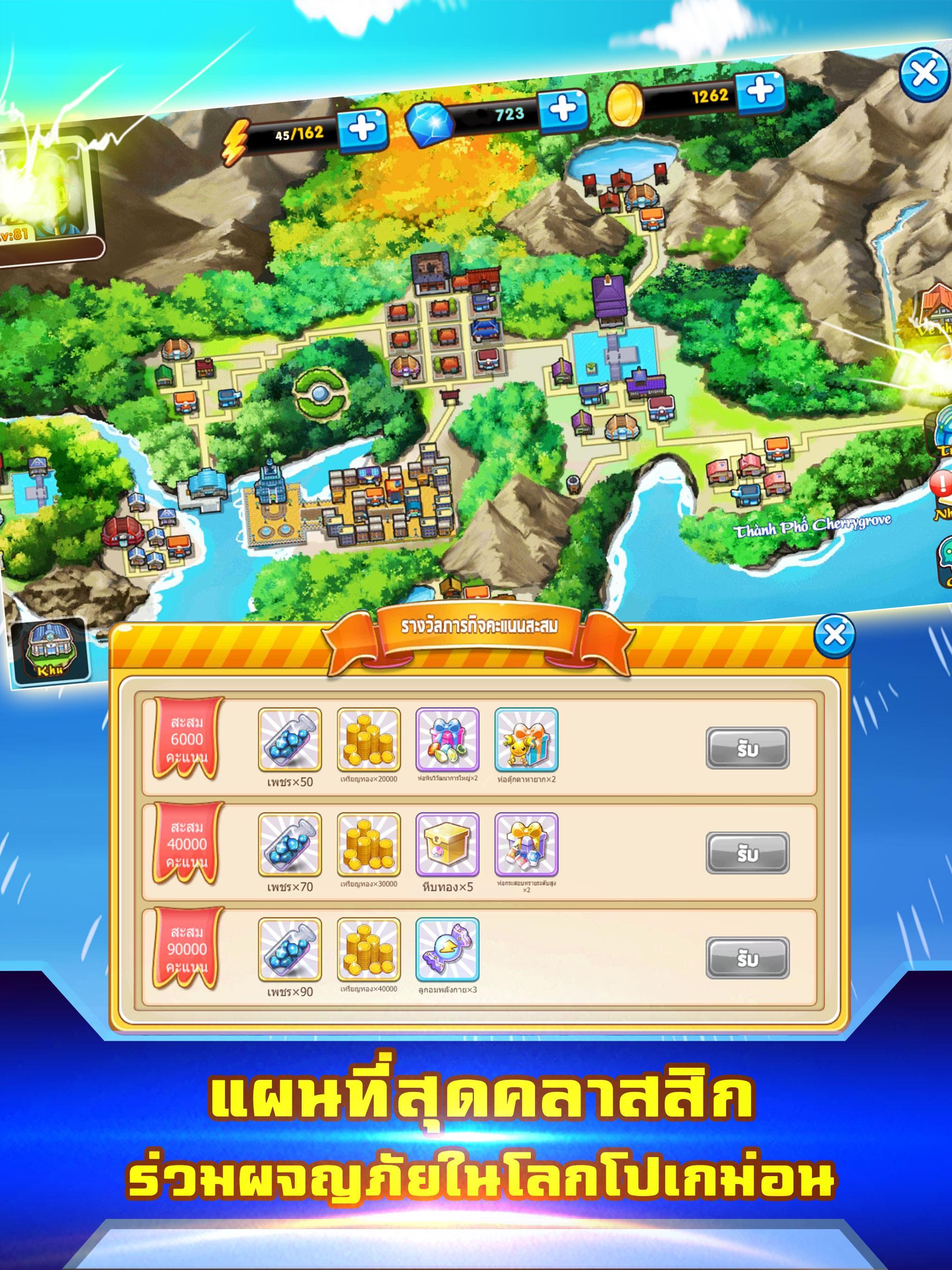 Arena activities Chase Pokémon Compete for treasure Full with PVE 、 PVP system with many cute prizes Prepare to bring the beloved Pokemon to compete with each other yet!