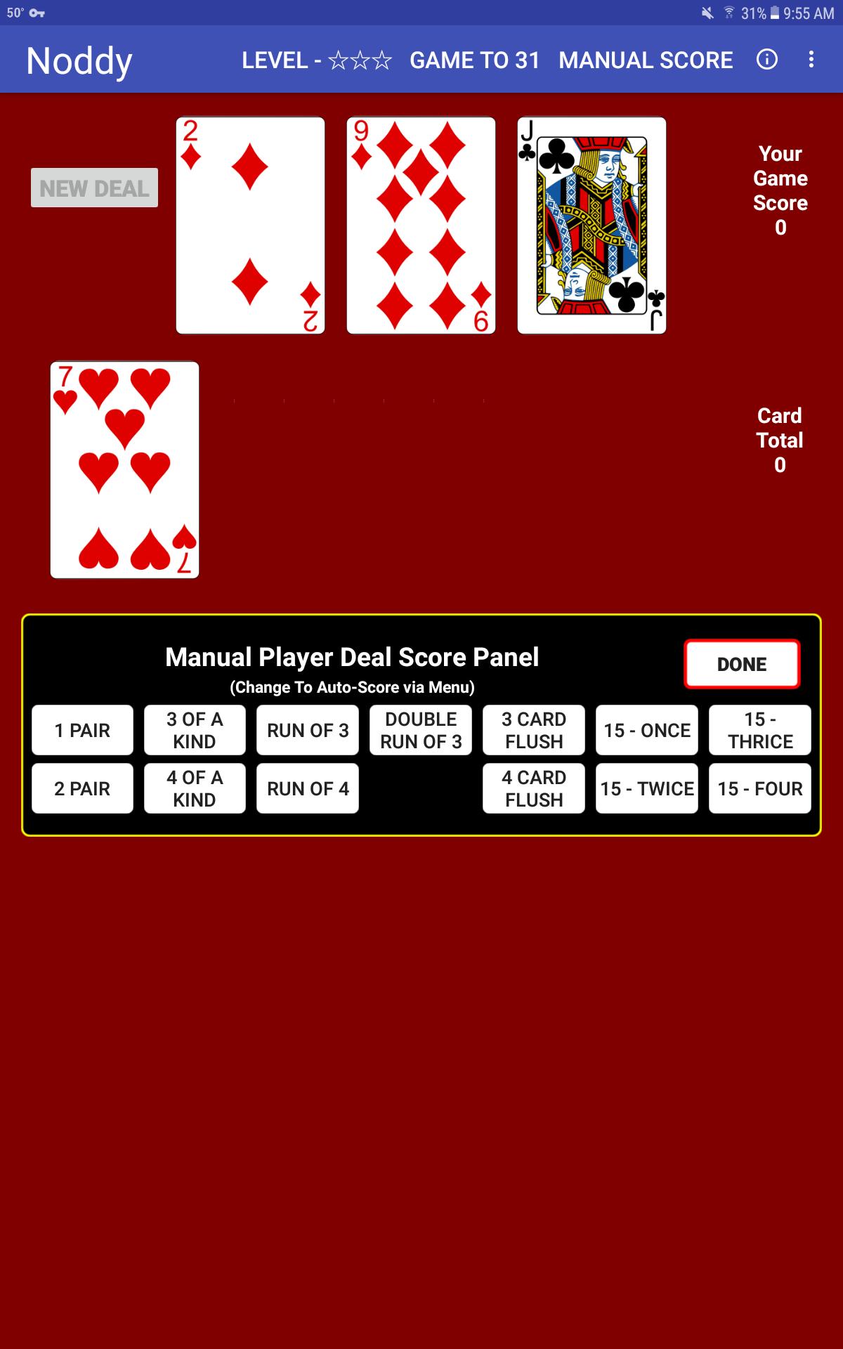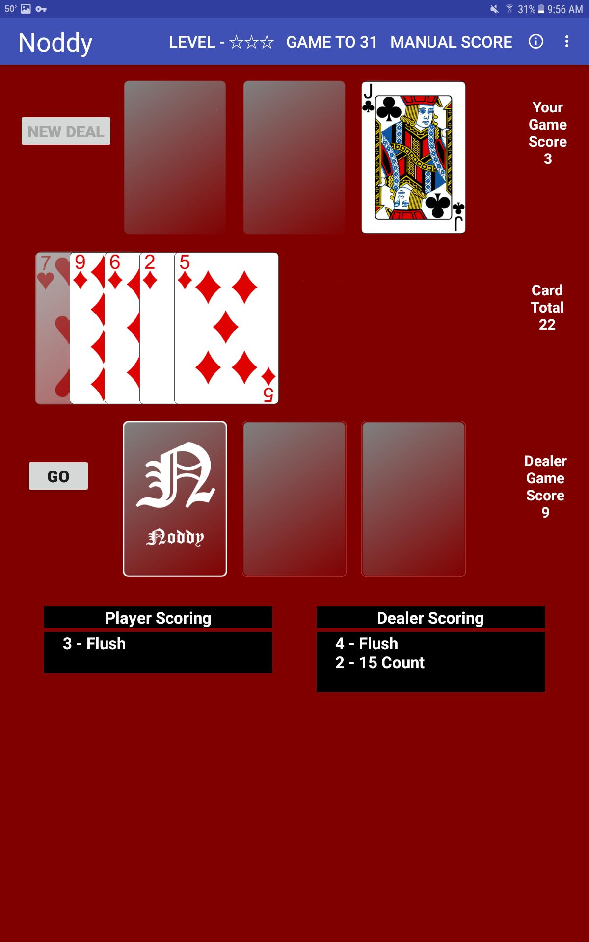 Cribbage-like game played without a board. This is a crib-less form, fashioned as a player versus dealer type of solitaire.