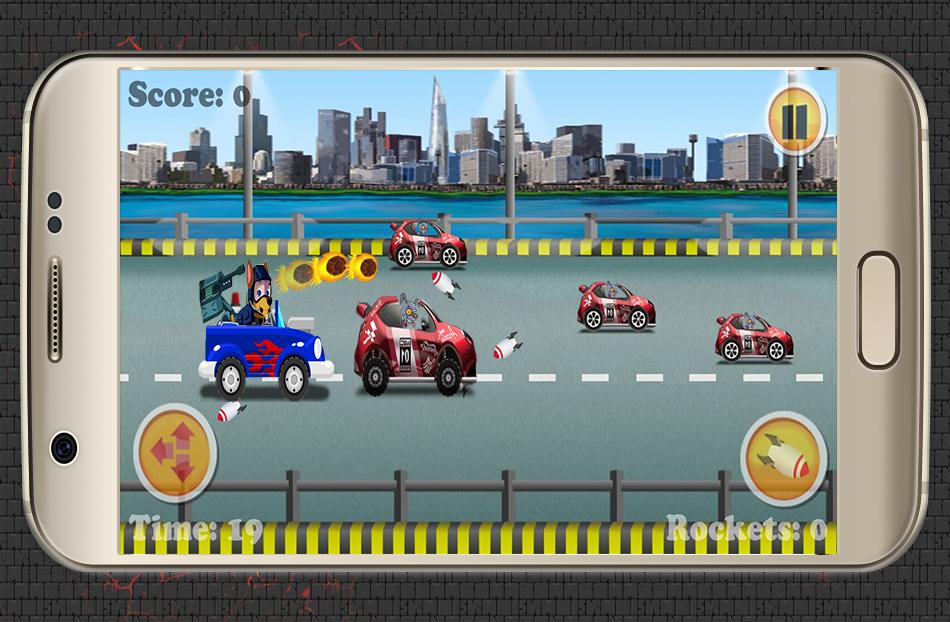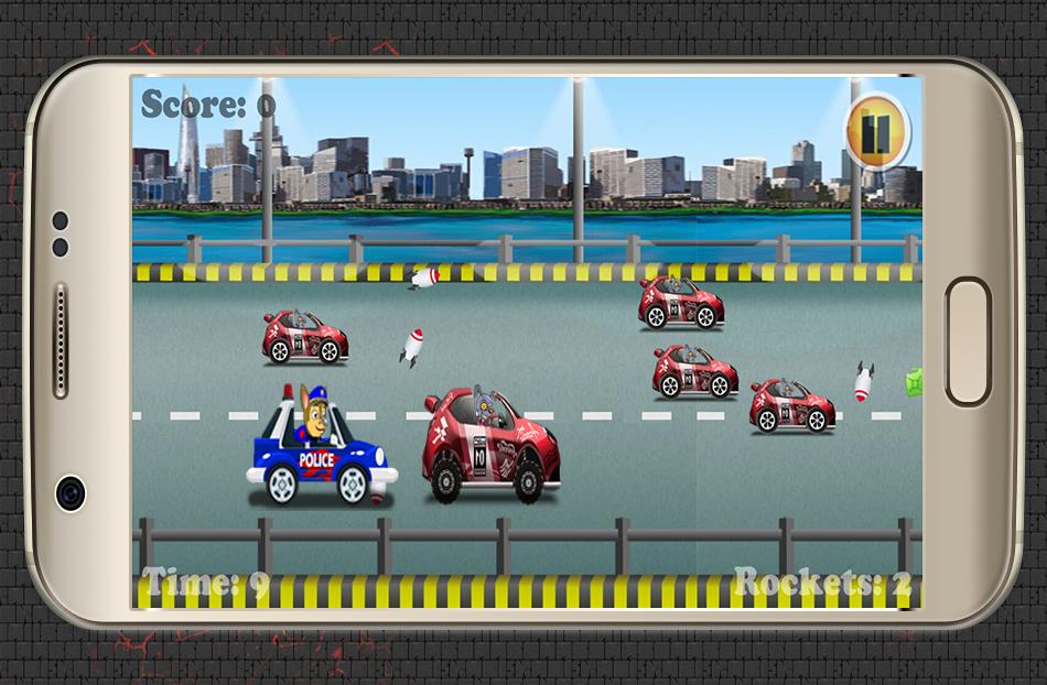 ★ Paw Road Puppy Gold Patrol Available as a free download And Addictive game-play for all ages it's best racing road game for ever ,Collect rockets on the road and then press fire button to launch a rocket to explode car. Also you need to collect gas or the game will be over. Avoid collisions with other cars. has many difficult levels to play and to discover Enjoy!