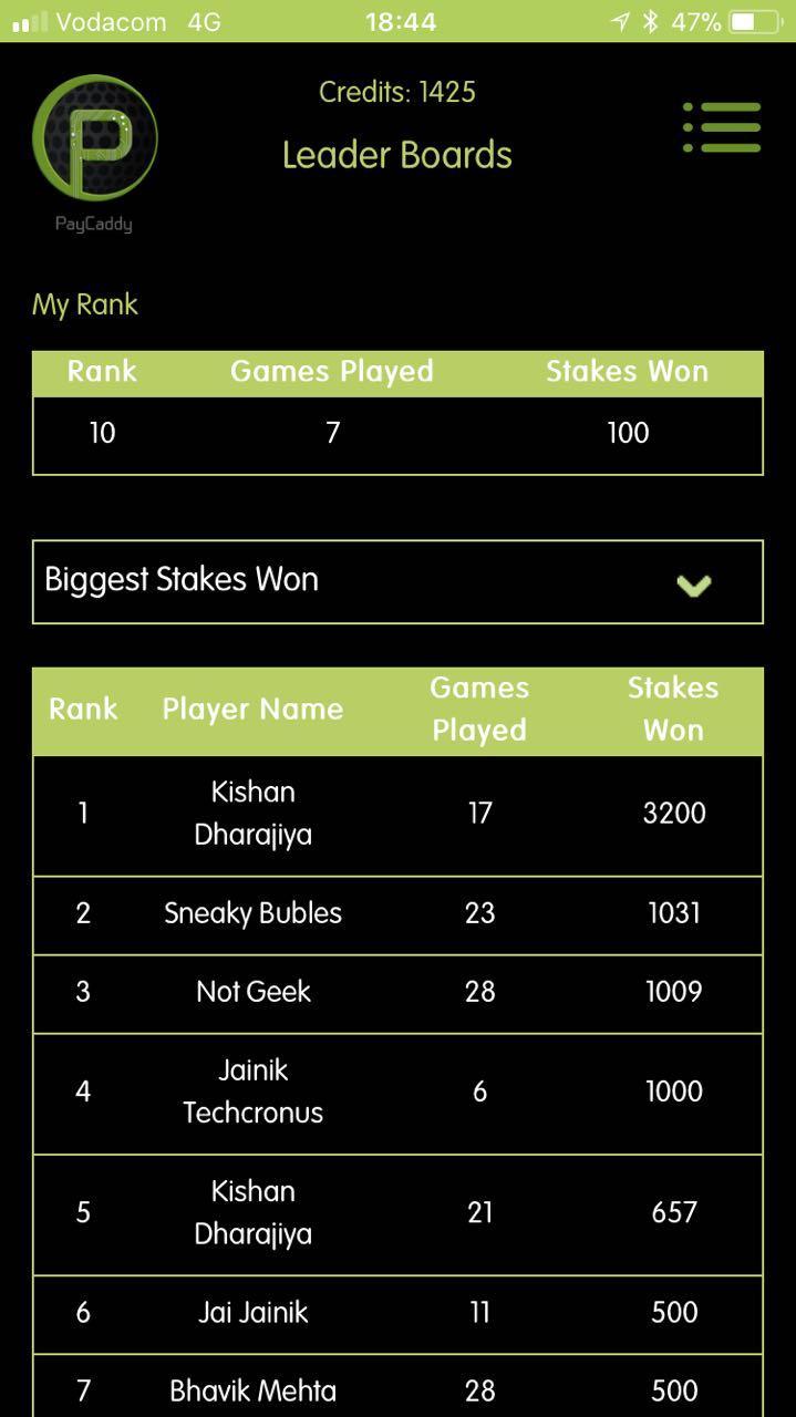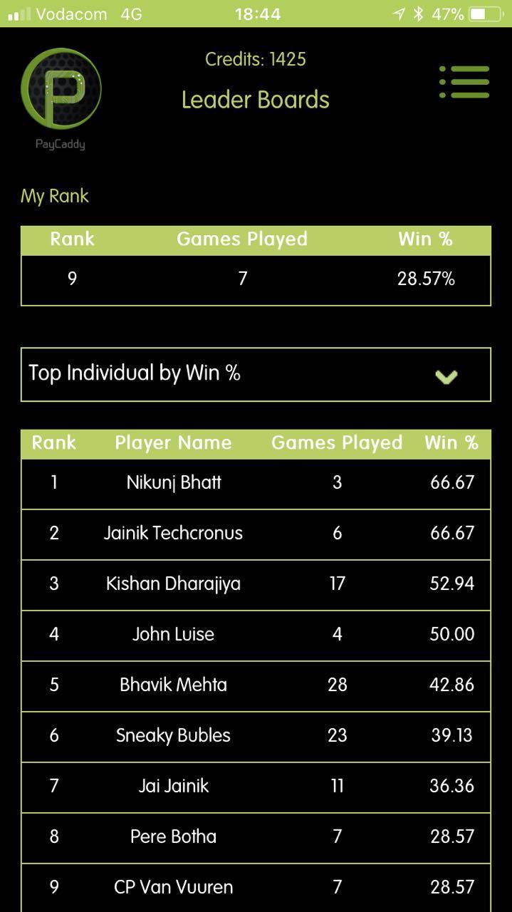 You can also use the app to keep score of you career record of wins and losses against your friends and see how you compare against the global PayCaddy users.