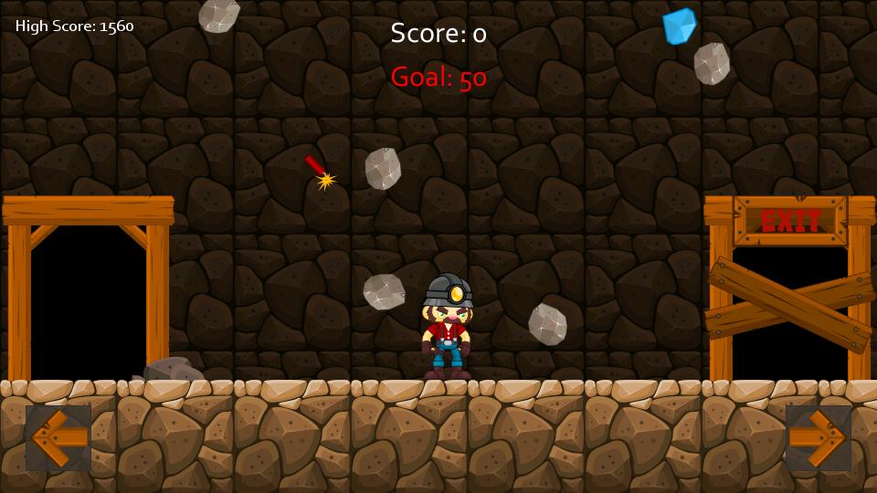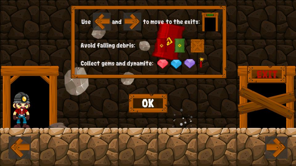 Play as Rocky, a miner trapped in a cave and avoid falling debris as you make your way to the exit. Grab dynamite to clear out debris and collect gems to unlock the exits. Survive as long as you can to get the top score!