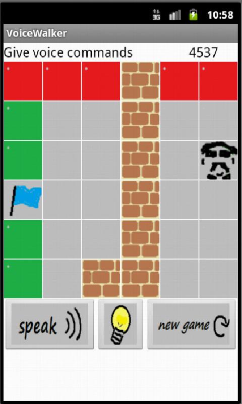 Walk through different levels of the maze by voice control (supported in English and German). Find the right Secret voice commands in each level and solve the puzzle how to cross or pass the walls in order to reach the banner. The game is a new challenge in each level and requires different stategies.