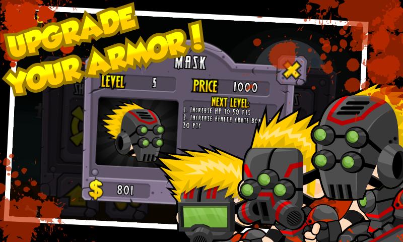 Also you can upgrade the character armor to ensure you have a maximum protection when blasting the zombie's head. Don't let the cute undead kill you. Make sure you're survive in this zombie outbreak.