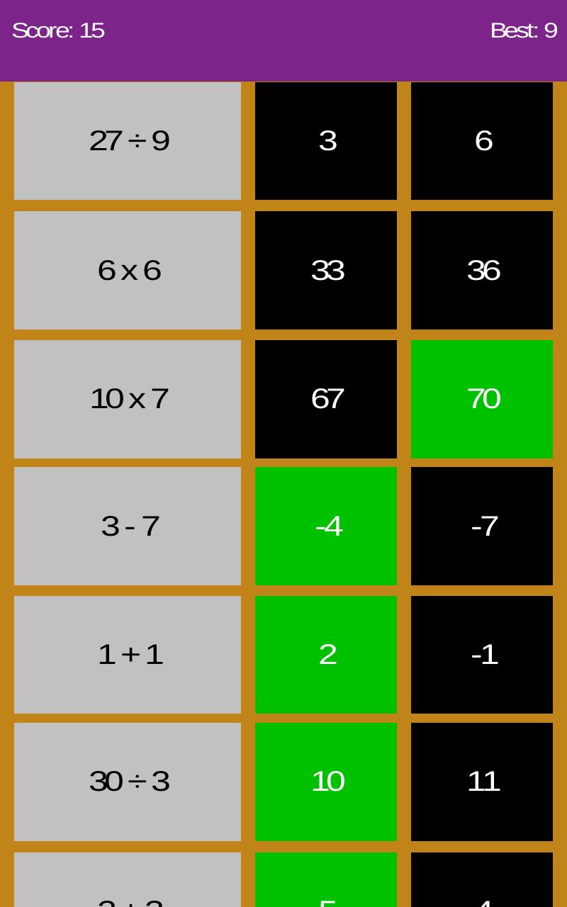 Smart Math can be played as casual games for everyone or as a math facts training for children.