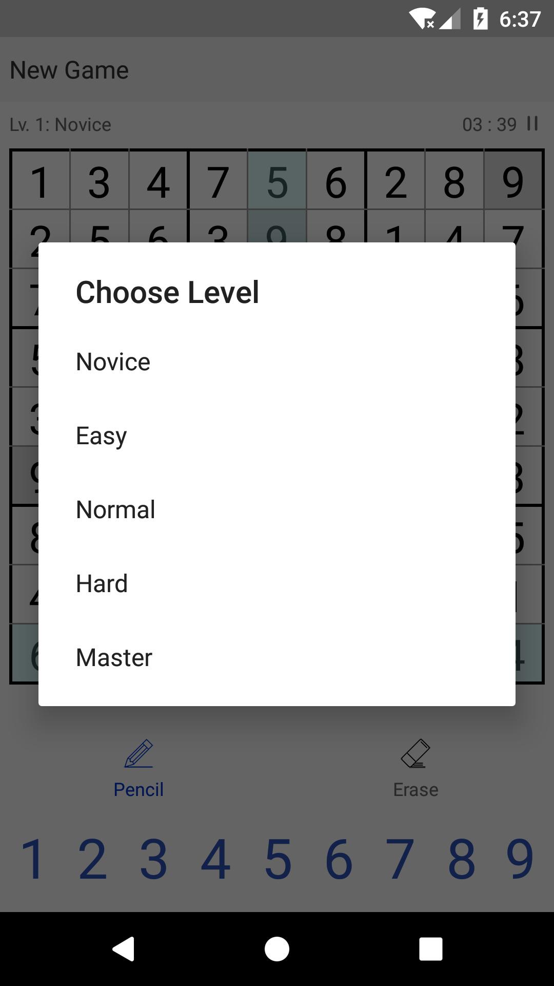 There are five levels of difficulties to choose, from novice to master.