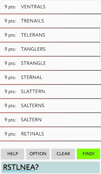 Need help finding a word to beat your friends in your online word games? This app will generate all possible words based on the letters you give it. ALL words that this app generates will work with popular competitive word games! Here are the features: