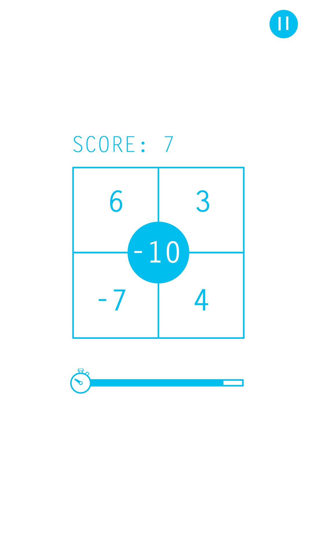 ● You have seven seconds to choose the correct answers in the four coners to zero the center number.