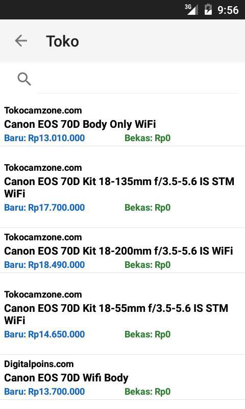 Cek Harga Kamera dimana saja kapan saja. Harga Kamera adalah aplikasi gratis untuk membantu browsing Harga Kamera dengan mudah. Semua merk global dan local ada disini. Cari dan pilih kamera yang sesuai dengan budget anda. Dengan aplikasi ini pengguna diharapkan bisa mendapatkan informasi harga pasaran pada saat akan membeli camera yang diidamkan.