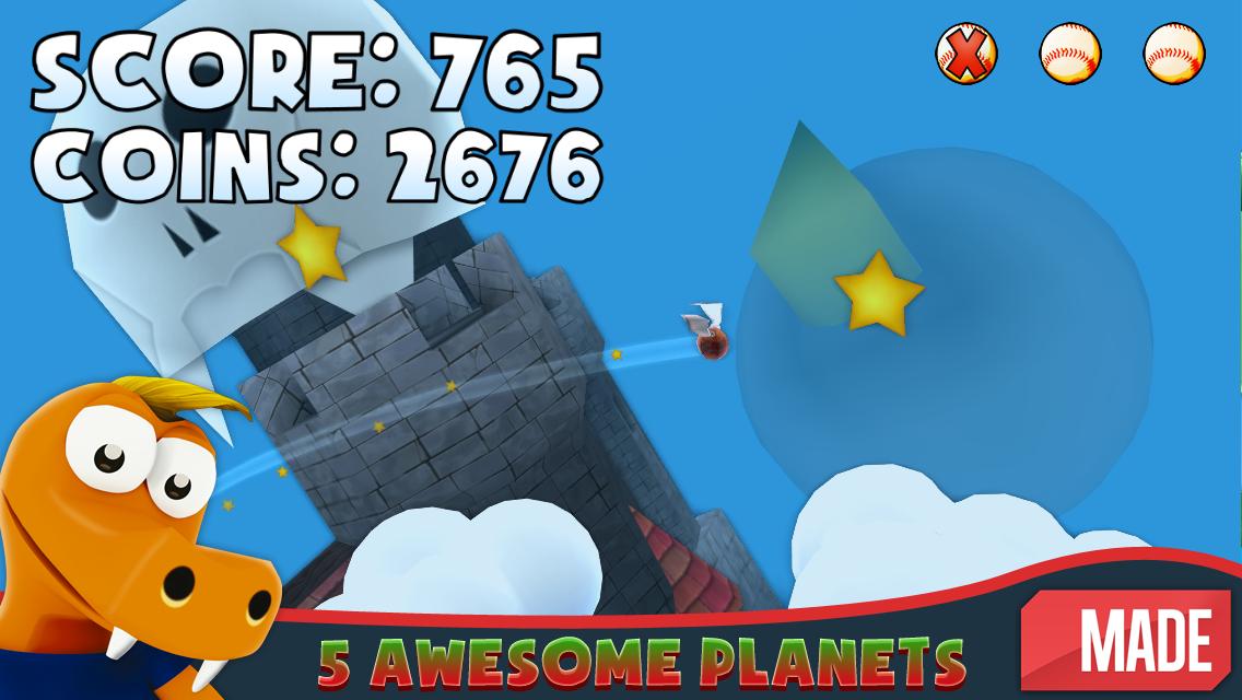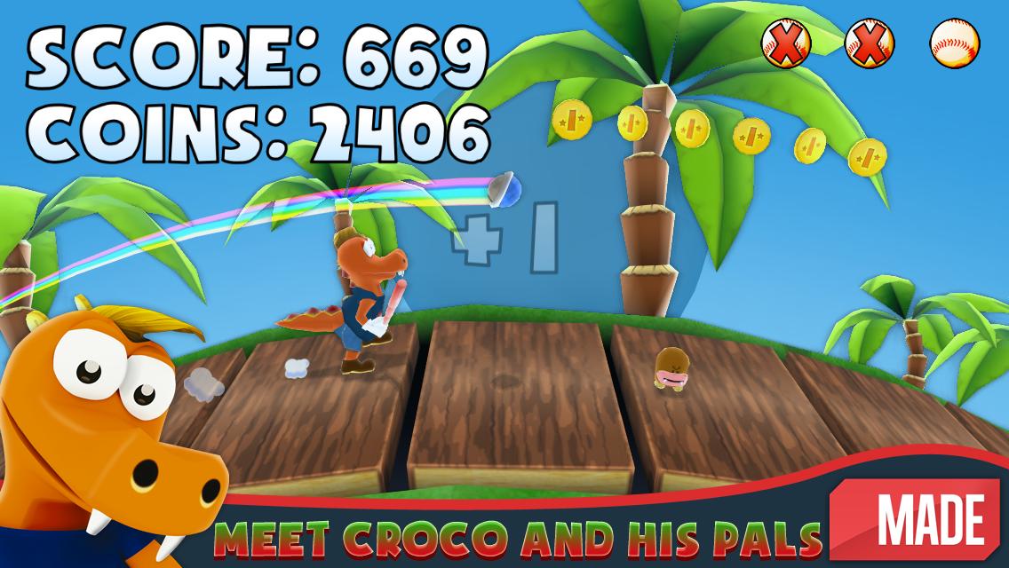 Buat Croco menjalankan homerun untuk mendapatkan poin tambahan, mengumpulkan bintang dan koin untuk membeli barang -barang mengagumkan di toko.