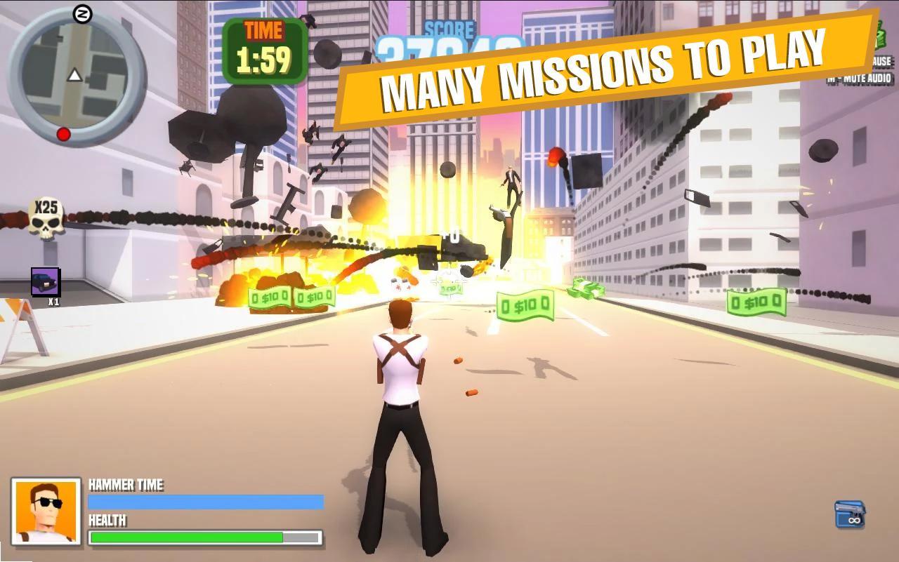 Jalan -jalan kota penuh dengan orang jahat. Siapa yang akan kamu hubungi? Itu benar, itu Hammer Reloaded . Dia akan meluruskan mereka dengan senapannya.