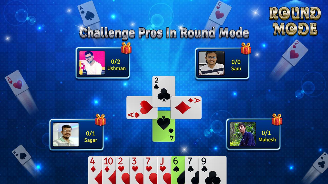 2. Mode Bundar Permainan dimainkan dalam putaran, dengan setiap putaran memiliki jumlah kartu yang berbeda per tangan dan setelan Trump yang berbeda.
